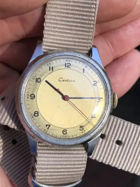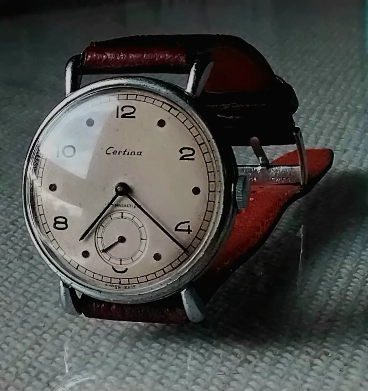 Menudo trabajo de investigación, Kike!!.. El libro donde vi los Certina con esa grafía estaba escrito en alemán, inglés y francés, y en él (sigo tirando de memoria) es dónde creo haber visto esos Certina con cursiva simple. Ese libro lo tuve y lo vendí, pero es este en concreto ..Como a mí estas intrigas me motivan para investigar, lo he estado haciendo y he encontrado, además de algunos con la esfera repintada, éstos que podrían ser originales, y que esta grafía sí existiera en los comienzos de la marca, por lo que la memoria de Álvaro no es tan mala como él cree, y que sí lo leyera en el libro que nos comenta, jejejejeje. Todos con números de serie inferiores a 400.000.