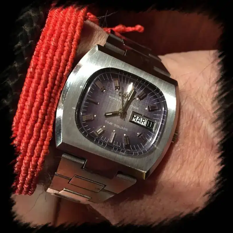 Hoy sale a la calle este CAMY, TIME SQUARE de finales de los 70, primeros 80, con su dial malva y su ETA 2789.