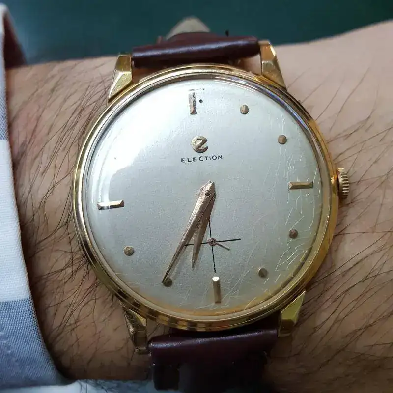Hola Amigos, ya aprovecho para presentarme (se que no es el lugar, pero de lo contrario no me conocerán), soy de Uruguay y me apasiona el mundo de los relojes desde los 16 años. Lamentablemente aquí no hay muchos tesoros, pero alguno he podido recolectar en el correr del tiempo. Bueno no los aburro más, estoy arrancando mi jornada laboral, y hoy elegí mi ELECTION de oro 18 para arrancar mi día, después del fin de semana largo de carnaval. Saludos y felicidades por esta hermosa comunidad que han creado.