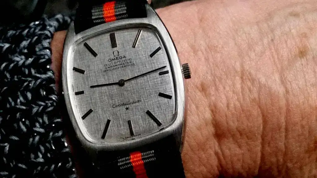 Le queda de cine. El reloj es precioso, con ese dial texturado y ese calibre dice ranfft que es el automático más fino (delgado) fabricado por omega