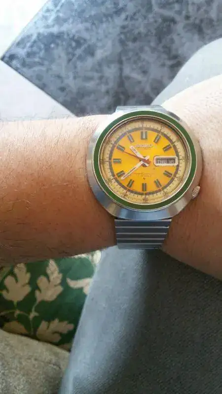 hola compañeros,suelo aportar alguna que otra foto de muy de vez encuando pero últimamente estoy sacando los vintages mucho mas ,hoy se me apetecia compartir con todos vosotros este seiko creo del año 71 ,sin mas dejo la foto.....