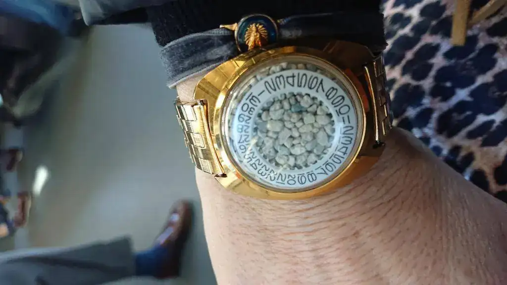 Me he quedado mirando un ratillo como daba la hora ese peluco, hasta que he deducido que es una pulsera relojera. [emoji23][emoji23]