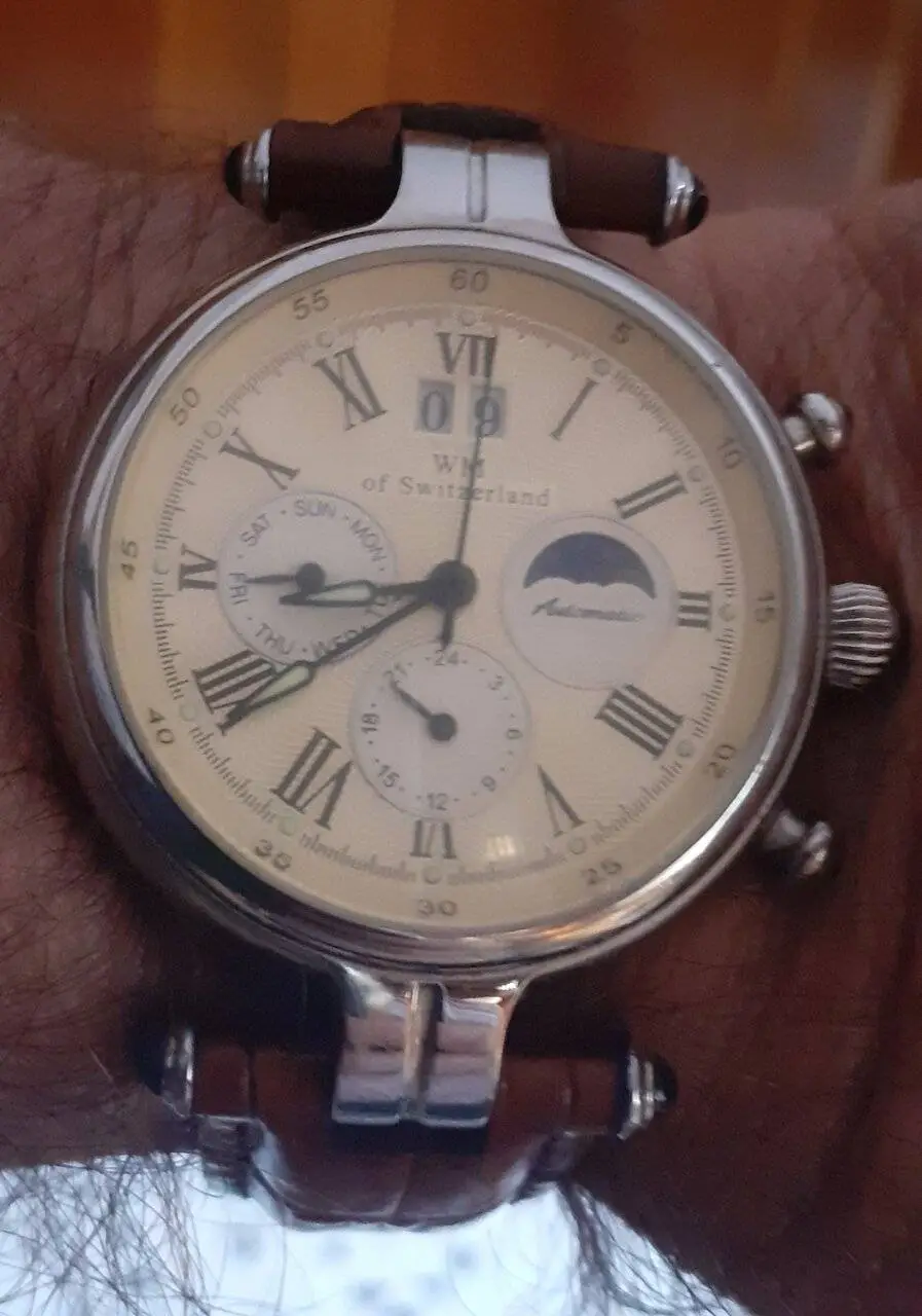Esa combinación de caja en acero e índices y agujas en dorado ( no amarillo) casi casi plateado, muy sutil, es para mí la combinación perfecta.Buenos días,