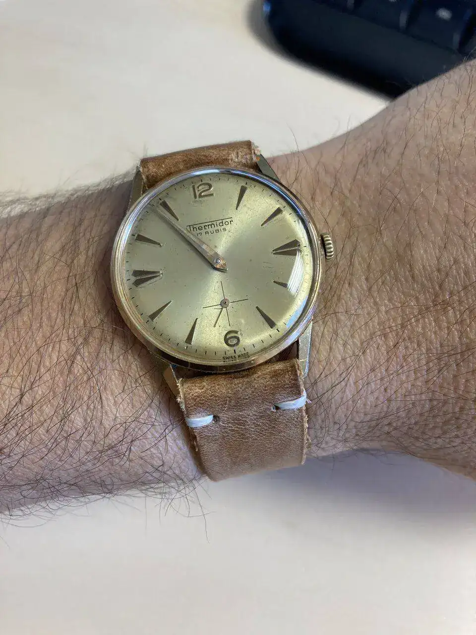 El reloj es un Thermidor con una pátina preciosa y un tamaño cómodo.