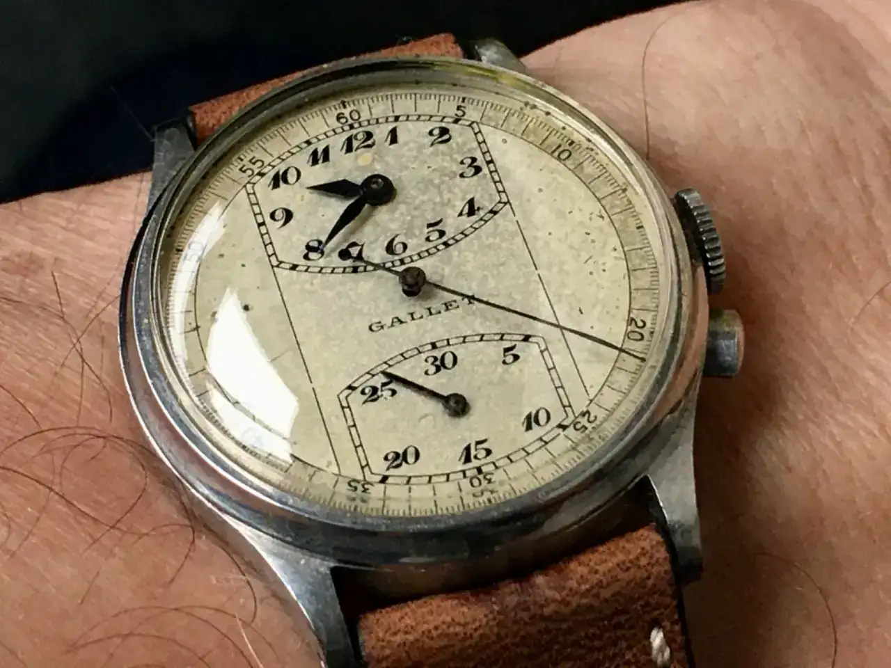 Omega 30T2 del año 41, de los primeros y de los pocos que quedan vivos y que compartió días con los últimos 30 y 30T1. Lo que queda de la grafía junto con los índices y anillos perimetrales, en rojo, color raro pero usado por Omega.