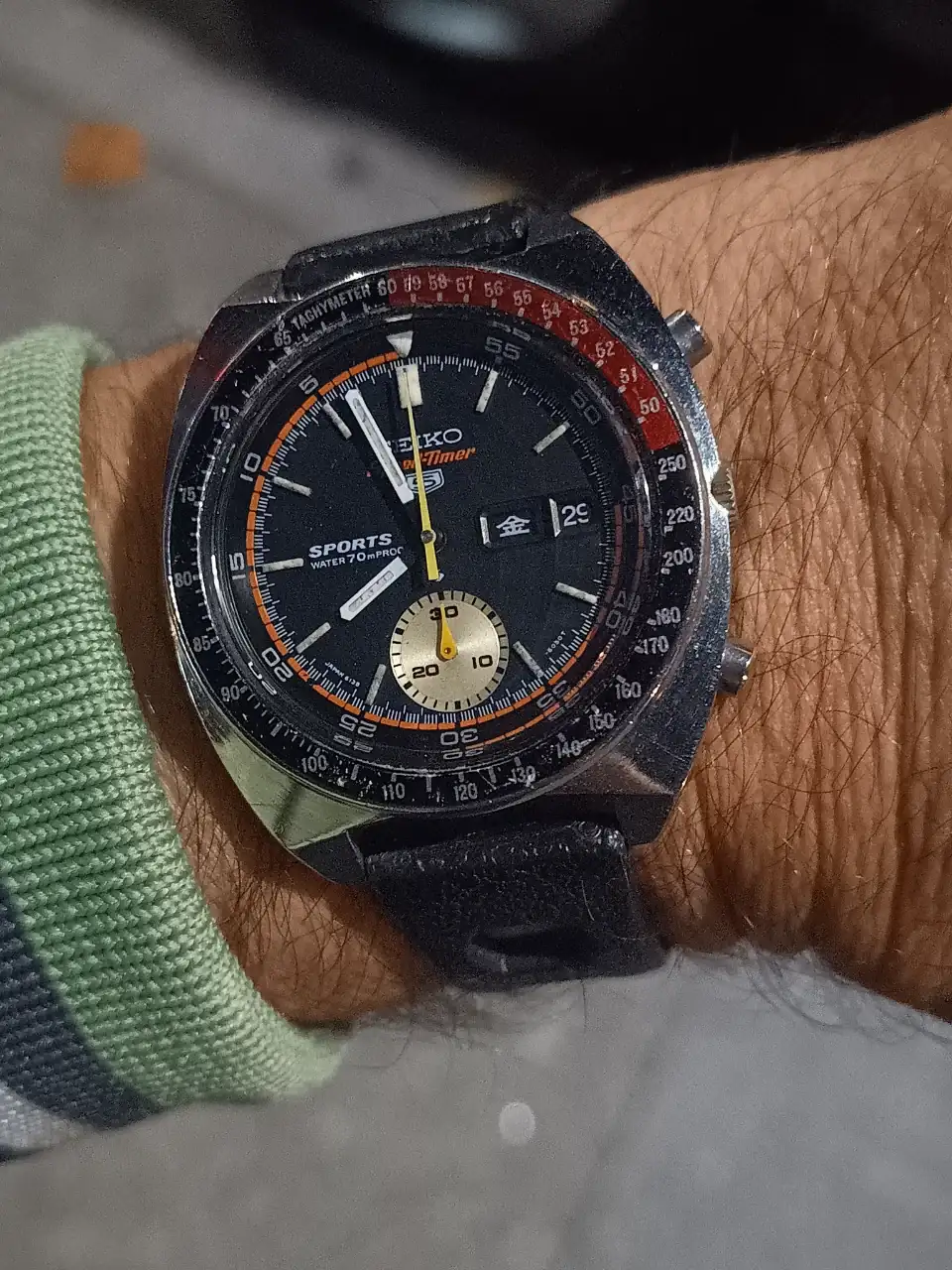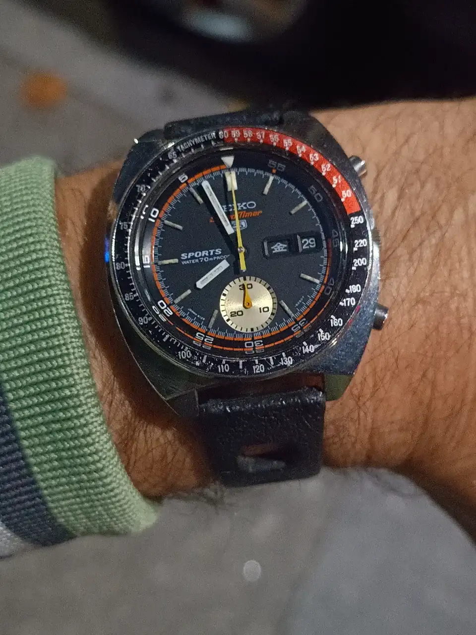Bravo por ese coke!! Poco te lo pones para el pedazo reloj que es. Por la muesca en la caja y el tipo de agujas (y por lo tanto movimiento A) debe ser del 69 o primeros meses del 70.