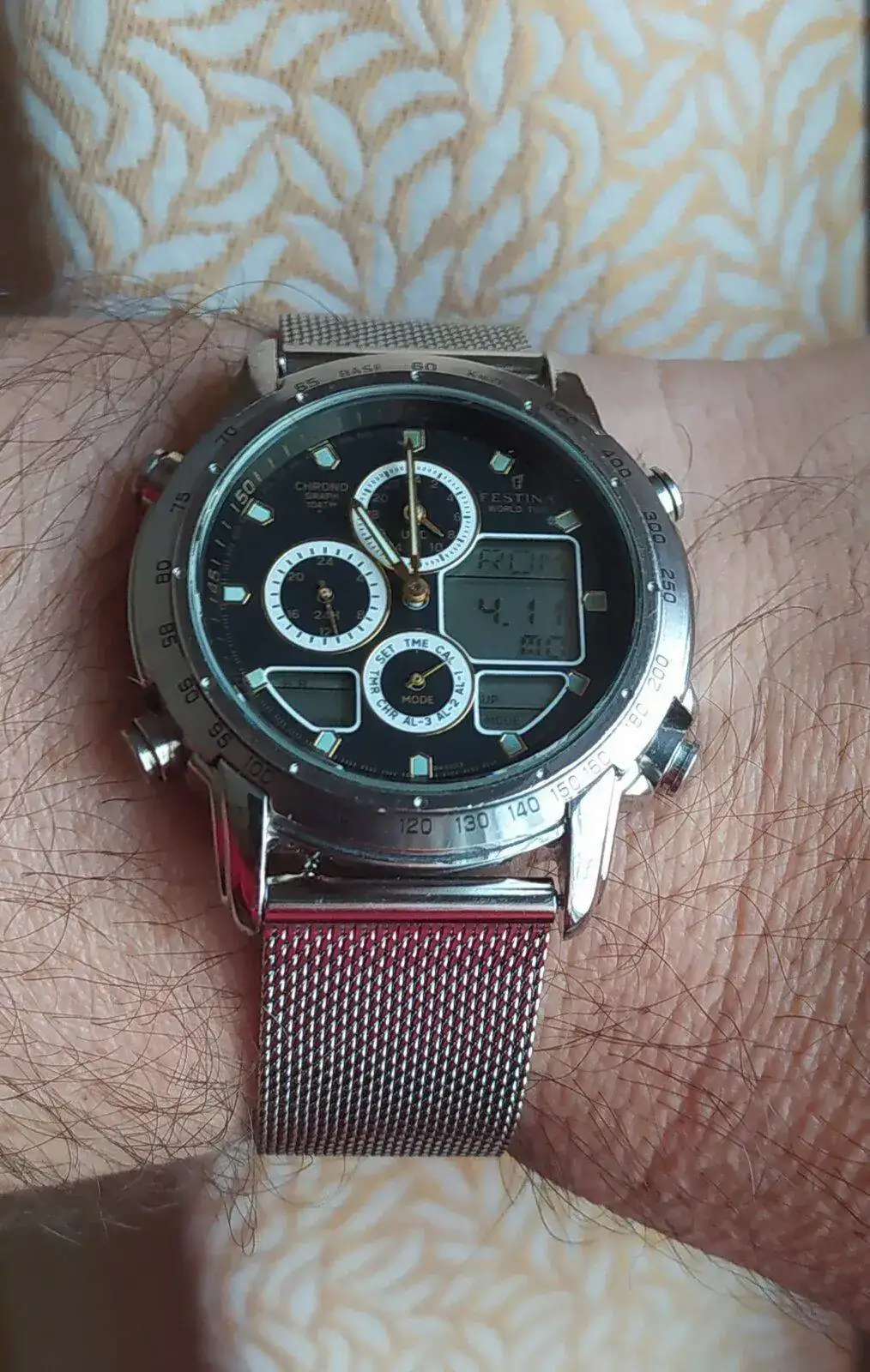 Gracias compañero me alegro de que te allá gustado este Festina entre sus funciones tiene horas del mundo, 3 alarmas, calendario , cronómetro y cuenta regresiva.Ojiplatico me quedo Antonio. Me encantan estos trastos con miyotas.👏👏👏👏