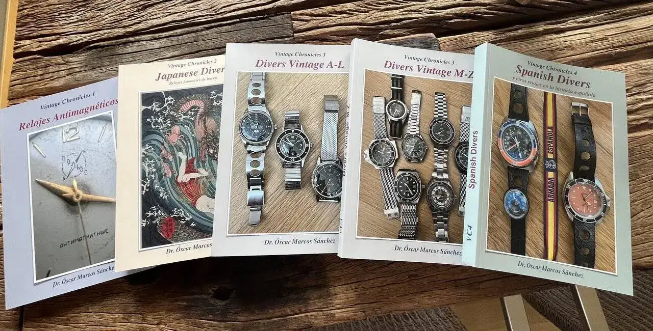 Debo apuntar también para poder poner en contexto la obra, que este libro es el quinto de una colección autoeditada que se titula “Vintage Chronicles", cuyo primer volumen vió la luz en 2023 y se dedicó a los “Relojes antimagnéticos”, posteriormente en 2024 se amplió con un segundo volumen sobre “Diver japoneses vintage” y un tercero y cuarto que trata del resto de “Diver vintage”. Todos ellos comparten un mismo formato A4 con tapa blanda y una media de 300 paginas a todo color que incluye miles de fotografías, aunque realmente los últimos se van acercando más a las 400 páginas. Son obras originales, escritas en castellano y que además no tienen nada semejante publicado en ningún otro idioma, con lo que se aporta también un toque de orgullo al idioma de Cervantes. La tirada ha sido muy corta, sólo para algunos amigos/compañeros que se interesaron por ello y ahora que llega este quinto y por el momento último volumen, me sentía en la obligación de comentarlo en este Foro donde deje mi palabra a unos cuantos compañeros de avisarles cuando este libro sobre divers de nuestra Armada se hiciera realidad. Considero que ese compromiso previo prevalecía sobre el de no participar más en RE y lo doy por satisfecho con este hilo/anuncio.
