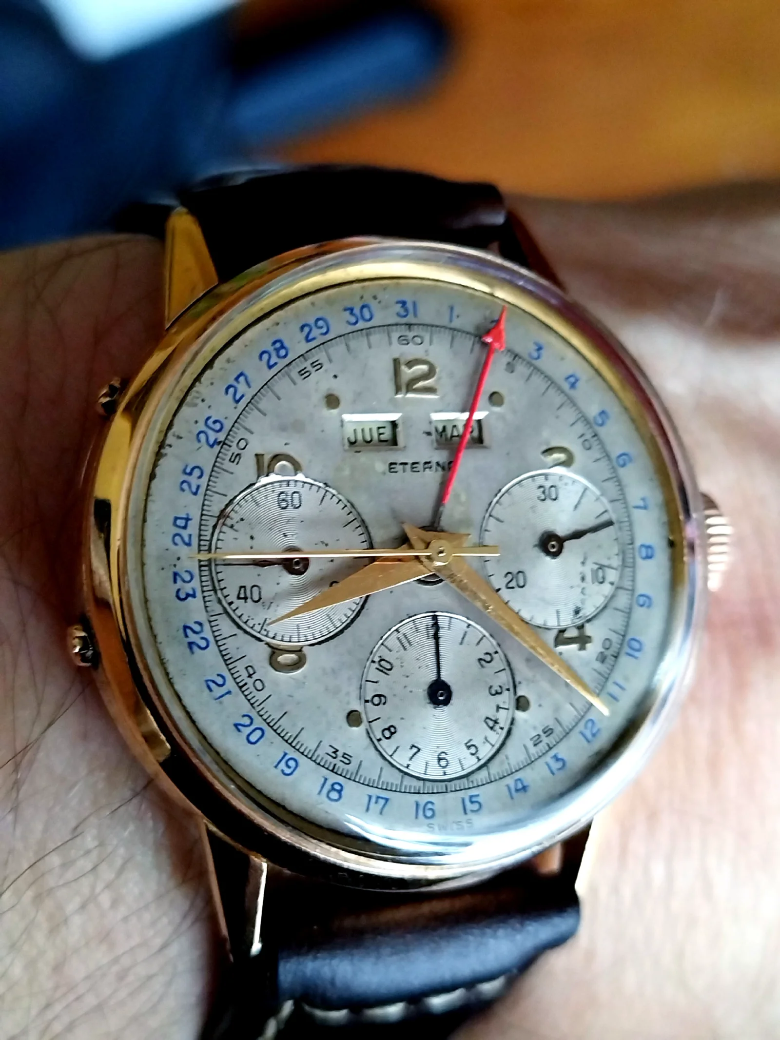 Hermosa galaxiaVaya pepino de Eterna, gotzon. Y me alegro de ver ese Lemania que me gusta tanto. Yo llevo este que estaba en fecha, la de tiempo que haría que no se movía.