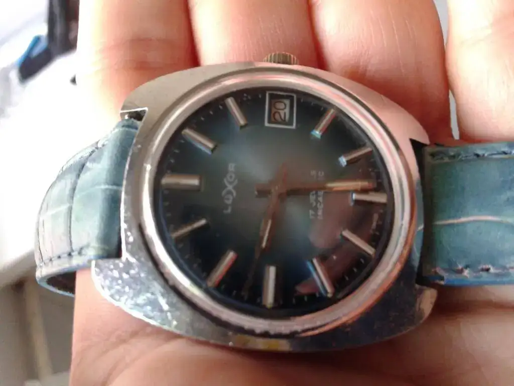 Saco a la venta este fantástico vintage de cuerda manual. Preciosa esfera con tonos azules, no es un azul uniforme y a la luz del sol es muy bonito. Mantiene una marcha correcta y lleva un buen calibre, duro y fiable. Las medidas de la caja con el metro es 35, pero parece mayor por el tipo de caja. Lo dejo a muy buen precio con el envío incluido, porque debo seguir sacando relojes por las recientes incorporaciones. Contacto por mp. Muchas gracias a todos, y al foro por el espacio.