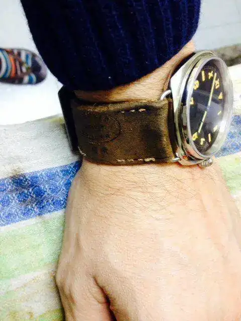 La swiss ammo me ha decepcionado un pelín mucho ya que por su elevado precio me esperaba algo más…la encontré bastante tosca, dura y sin gracia, así que, me puse manos a la obra y la he tuneado a mi gusto dandole un aire más vintage y convirtiéndola en una correa cómoda y acorde con un reloj de estas características. Después de todo el trabajo no descartó meterme en el mundo de las correas vintage/artesanales ya que España y en particular Ubrique cuenta con las mejores pieles del mundo mundial y se me ocurren varias cosas que podrían gustar mucho.