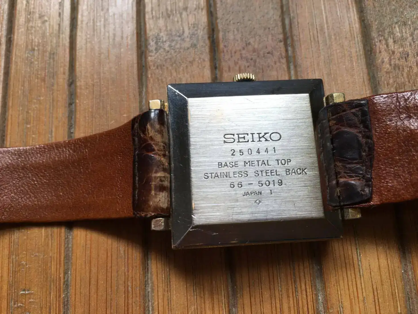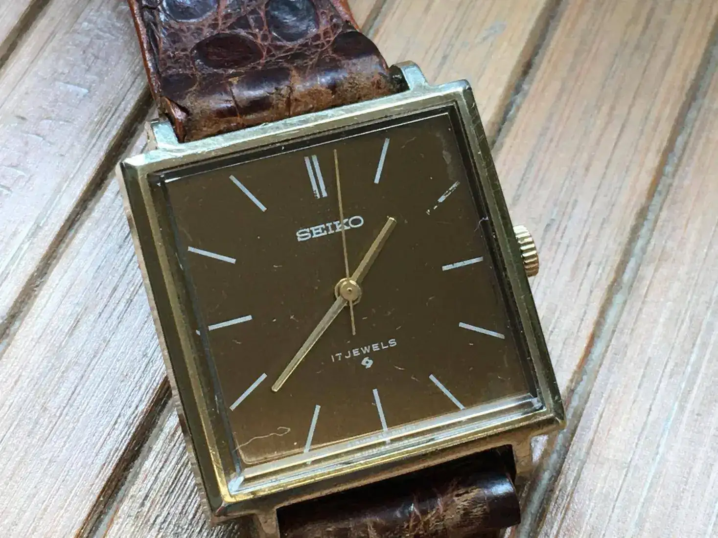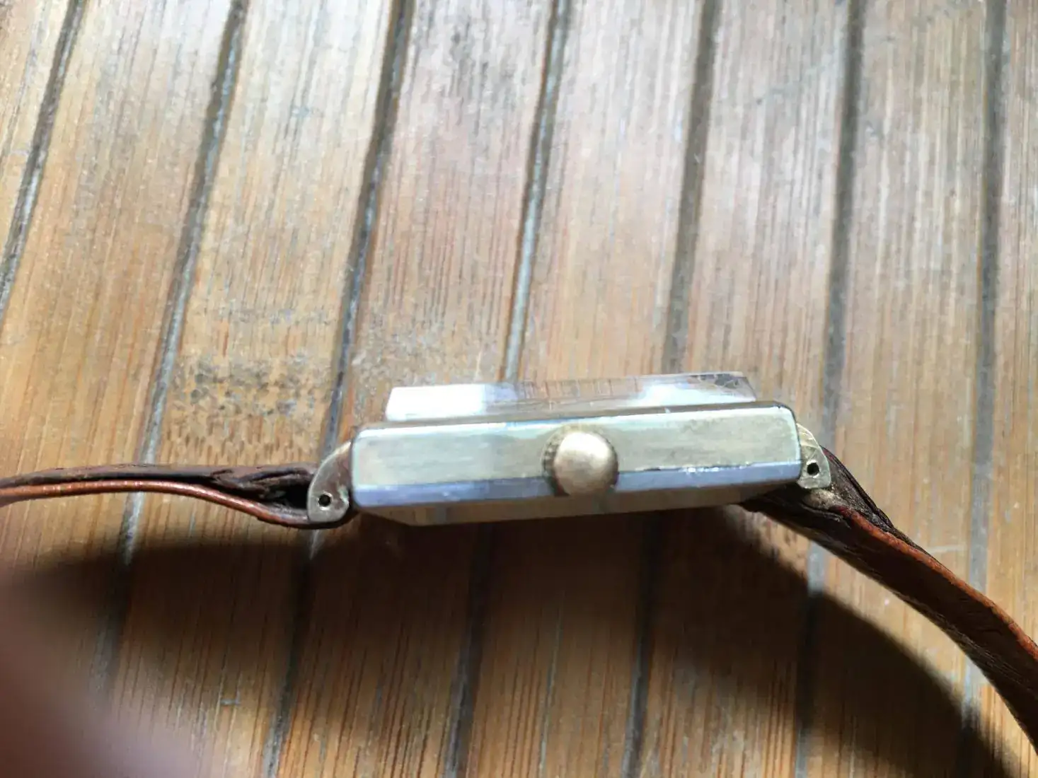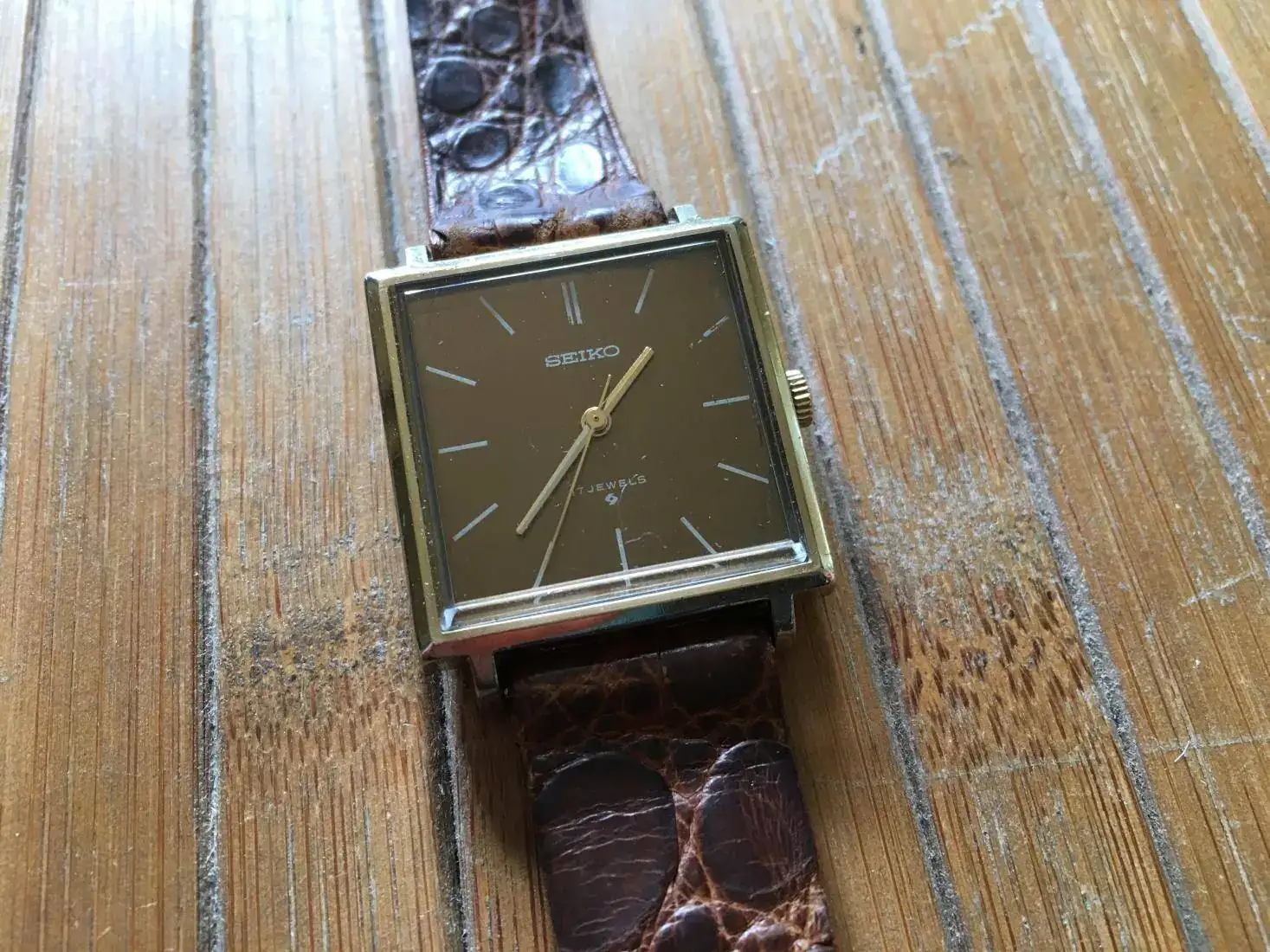 Correa vintage de cocodrilo, con uso pero usable. Es la que le puse porque me parece que le quedaba mejor de las que tenía.