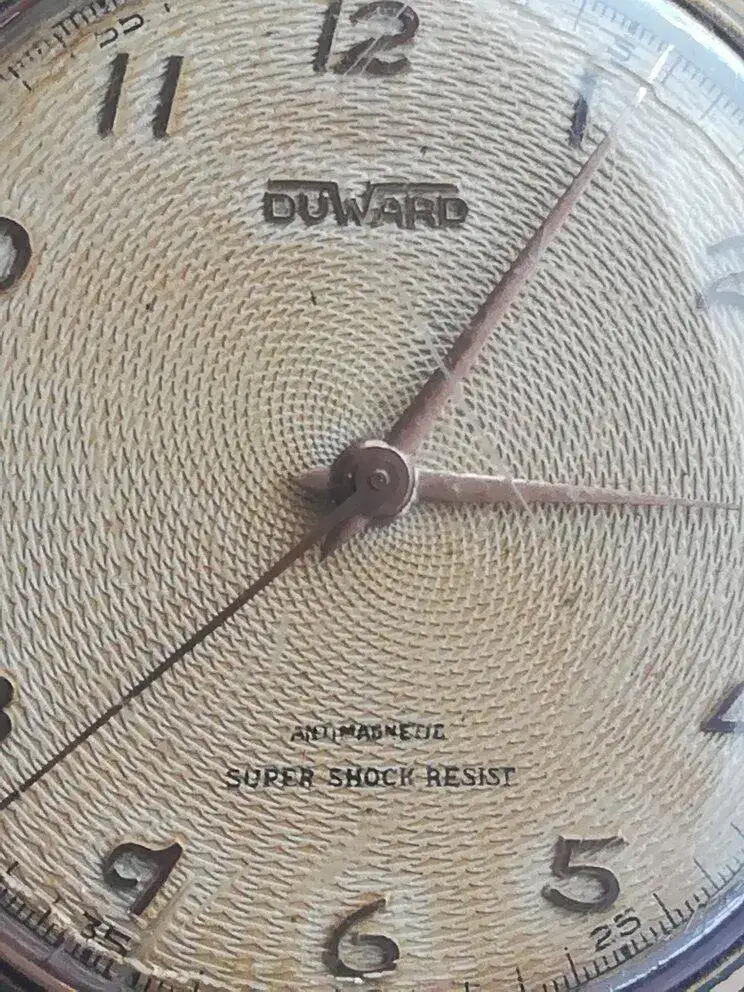 Precioso el reloj Duward antiguo, esa trama en la esfera me recuerda algunos modelos muy elegantes de la marca Vulcain , concretamente a los cricket.Hola, es la primera vez que participo en este subforo de vintages, vaciando la casa de un familiar de mi esposa fallecido hace años, hemos encontrado esos dos relojes, uno con unos años y el otro de la misma marca que le regalo la empresa en el momento de la jubilacion, aunque a mi el antiguo me gusta mucho mas, es mecanico y tiene una patina interesante, haciendole una puesta a punto y Ver el archivos adjunto 1722282Ver el archivos adjunto 1722283Ver el archivos adjunto 1722284Ver el archivos adjunto 1722285Ver el archivos adjunto 1722286Ver el archivos adjunto 1722287cambiandole la milanesa por otra mas adecuada a mi gusto, creo que quedara sensacional.