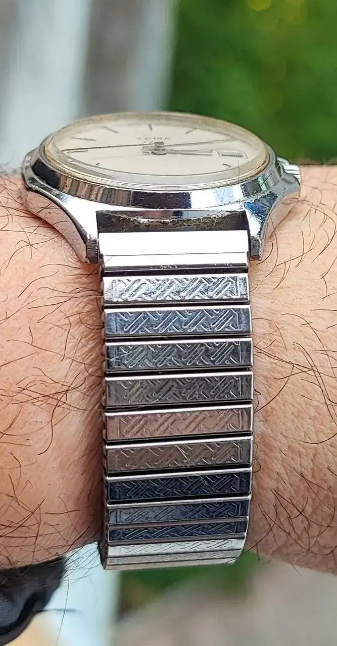 Por supuesto que original es, nunca se me hubiera ocurrido hacer esoÉso es, cuando compré el reloj el brazalete estaba incompleto, lo tuve guardado unos años hasta que hace poco se lo llevé a revisar al relojero que completó como pudo la correa, hasta ayer que encontré uno del mismo ancho y parecida época (aunque diferente diseño), cogí los eslabones necesarios para completar el original incompleto y la verdad es que queda raro pero bien, éstos brazaletes antiguos tienen "algo"