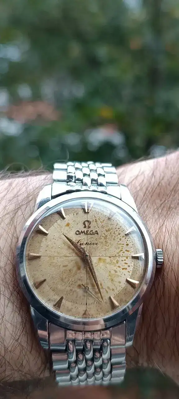 Éso es, cuando compré el reloj el brazalete estaba incompleto, lo tuve guardado unos años hasta que hace poco se lo llevé a revisar al relojero que completó como pudo la correa, hasta ayer que encontré uno del mismo ancho y parecida época (aunque diferente diseño), cogí los eslabones necesarios para completar el original incompleto y la verdad es que queda raro pero bien, éstos brazaletes antiguos tienen "algo"Bonito el francés, aunque eso sí a escasos 70 km de la Suisse o de Swiss