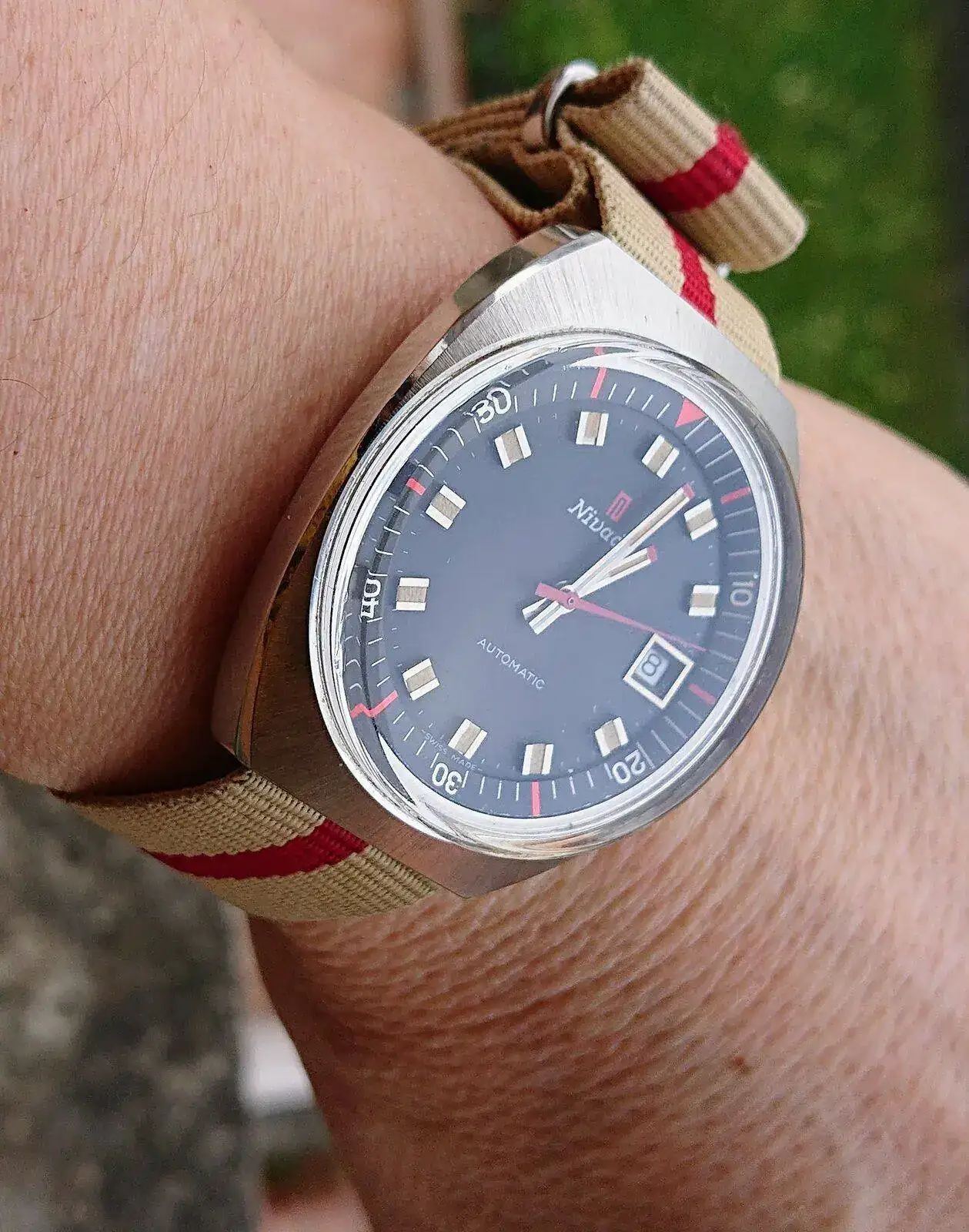 A mí (lo pongo en negrita porque es algo totalmente subjetivo y personal) estos potentes nipones setenteros como más me gustan, cuando es posible, es con sus brazaletes; creo que es con lo que mejor combinan y lucen su singular personalidad. Dicho lo cual, esa correa de ante gris me parece muuuuuy bonita y me la imagino preciosa con una caja más convencional o contenida en acero, especialmente con una esfera azul