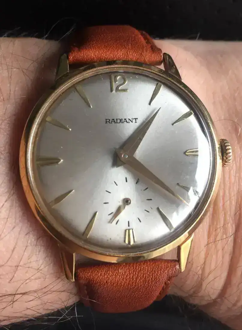 Por cierto, yo hoy llevo un Lip modelo sepia. Su esfera es un poema de colorines y pátina (por no decir que merece ser quemada en la plaza), pero le tengo cariño porque lo rescaté del Rastro, tenía adheridos restos de cemento, o corales ... o yo qué sé, pero el Míguel, mi amigo relojero, con una paciencia infinita logró desprenderlos y así quedó. Hace unos pocos años subí un hilo contando el proceso de su recuperación, pero no soy capaz de encontrarlo