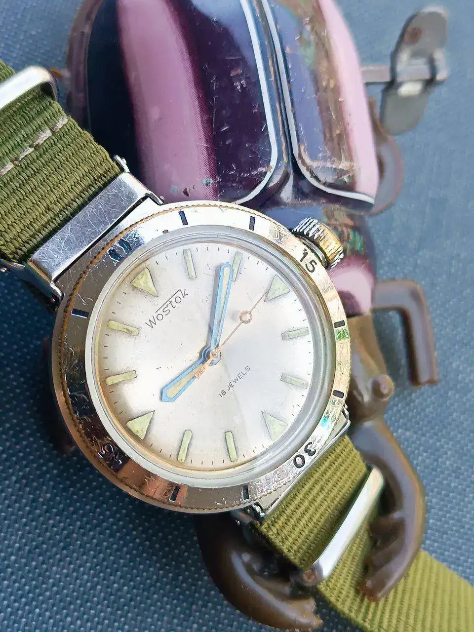 Impresionante ese Wostok con esas agujas!. Y el escarabajo de juguete precioso!! Y a tamaño natural jajaja