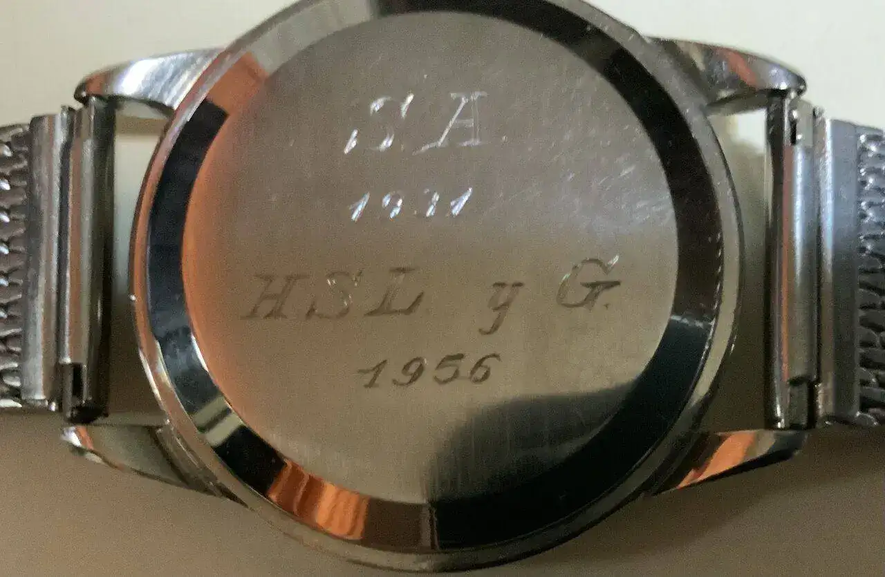 Y qué razón tienes, lo que habrá vivido esta mujer y la cantidad de anécdotas y vivencias que podría contar y seguramente mucho más interesantes que las de los libros historia. Y efectivamente, con los relojes sucede lo mismo y que bueno sería que cuando nos hacemos con un reloj vintage, éste viniera acompañado de su “cuaderno de bitácora”, quién fue su primer dueño, lo compró él, se lo regalaron, por qué, cuál fue el motivo, qué uso le daba, por dónde le acompañó,……., y sobre todo qué camino ha seguido hasta llegar a mí. Cuántas veces me habré hecho esas preguntas cada vez que he tenido un reloj vintage en las manos. Por eso siempre he valorado mucho los relojes con inscripciones personales, que te cuentan parte de su historia o que por lo menos te permiten especular sobre ella, al contrario que muchos, que piensan que esas inscripciones le restan valor.