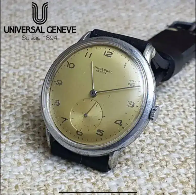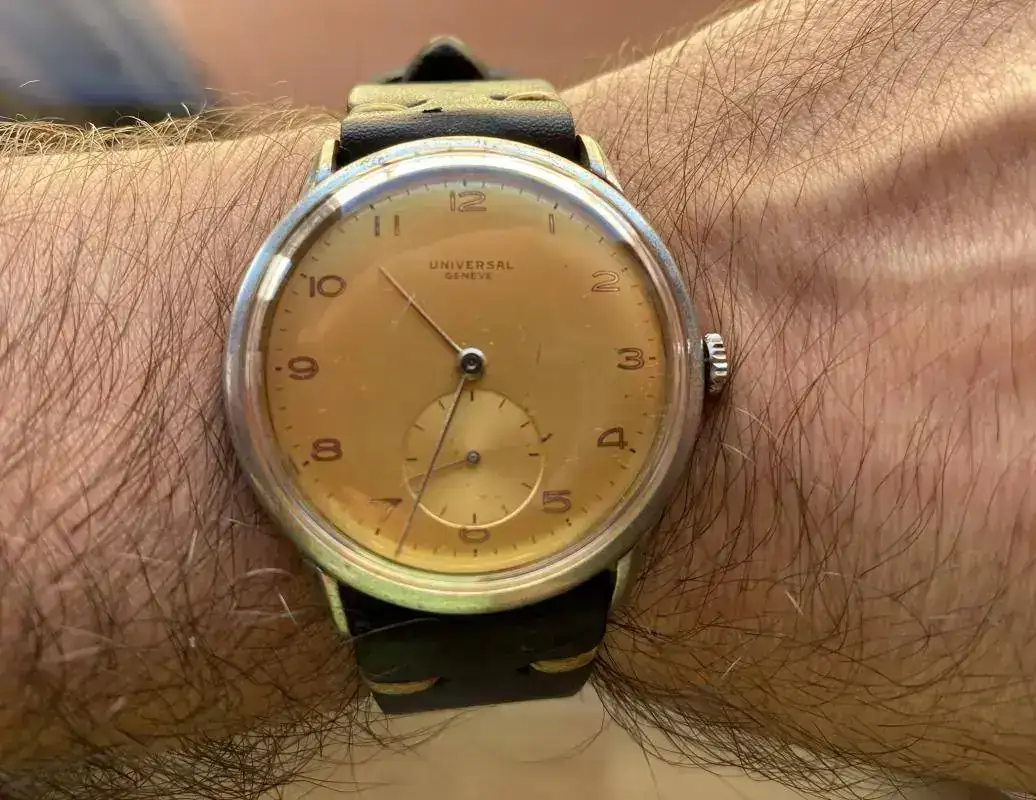 Precioso UG, la esfera espectacular y el calibre estupendo.Buenos días a tod@s, bonitas piezas, hoy hago la presentación del recién llegado en este hilo, un Universal Geneve con esfera color champán y calibre 262 y por supuesto me acompañará todo el día....