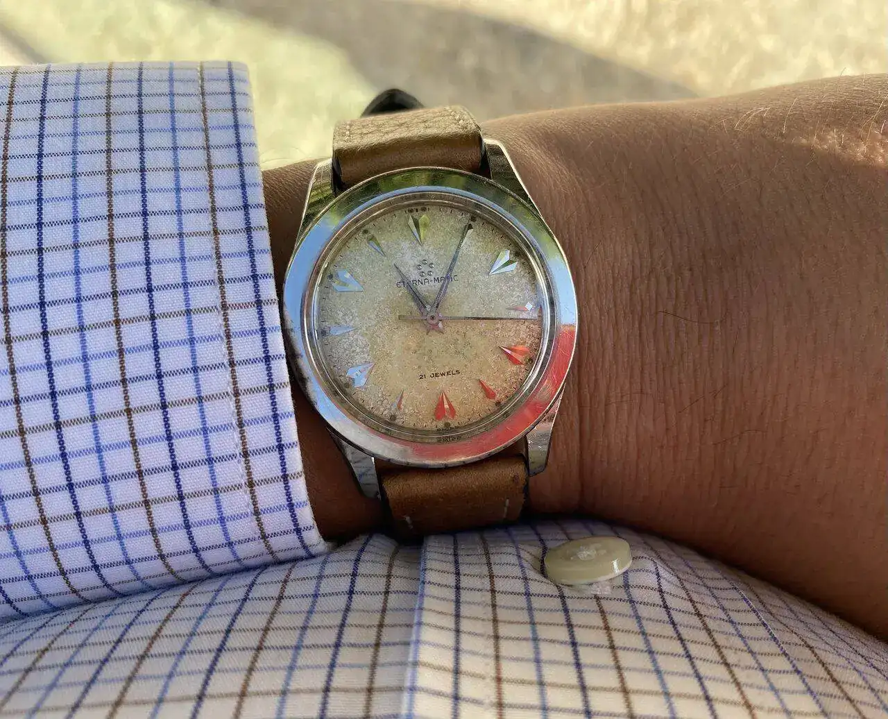 Otro que viene de familia, cuando falleció mi abuelo (2008) mi madre me entregó 3 (el cyma de ayer, un longines flagship y este) pero antes los llevó a revisar/repasar, cambio correas etc…en este tocaron/repintaron el dial lo que siempre me ha mosqueado.Ver el archivos adjunto 2499568