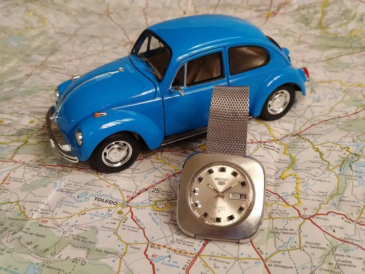 Hay que cambiar el mapa!!!!Buenos días ; Seiko 5 Albino de 1969 y su acompañamiento móvil " Beetle " para viajar por Iberia. Q tengáis un buen jueves y saludos al sotano & al foroVer el archivos adjunto 2496248Ver el archivos adjunto 2496249Ver el archivos adjunto 2496250