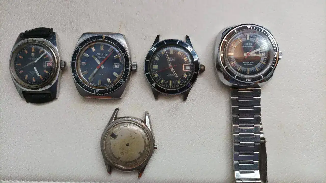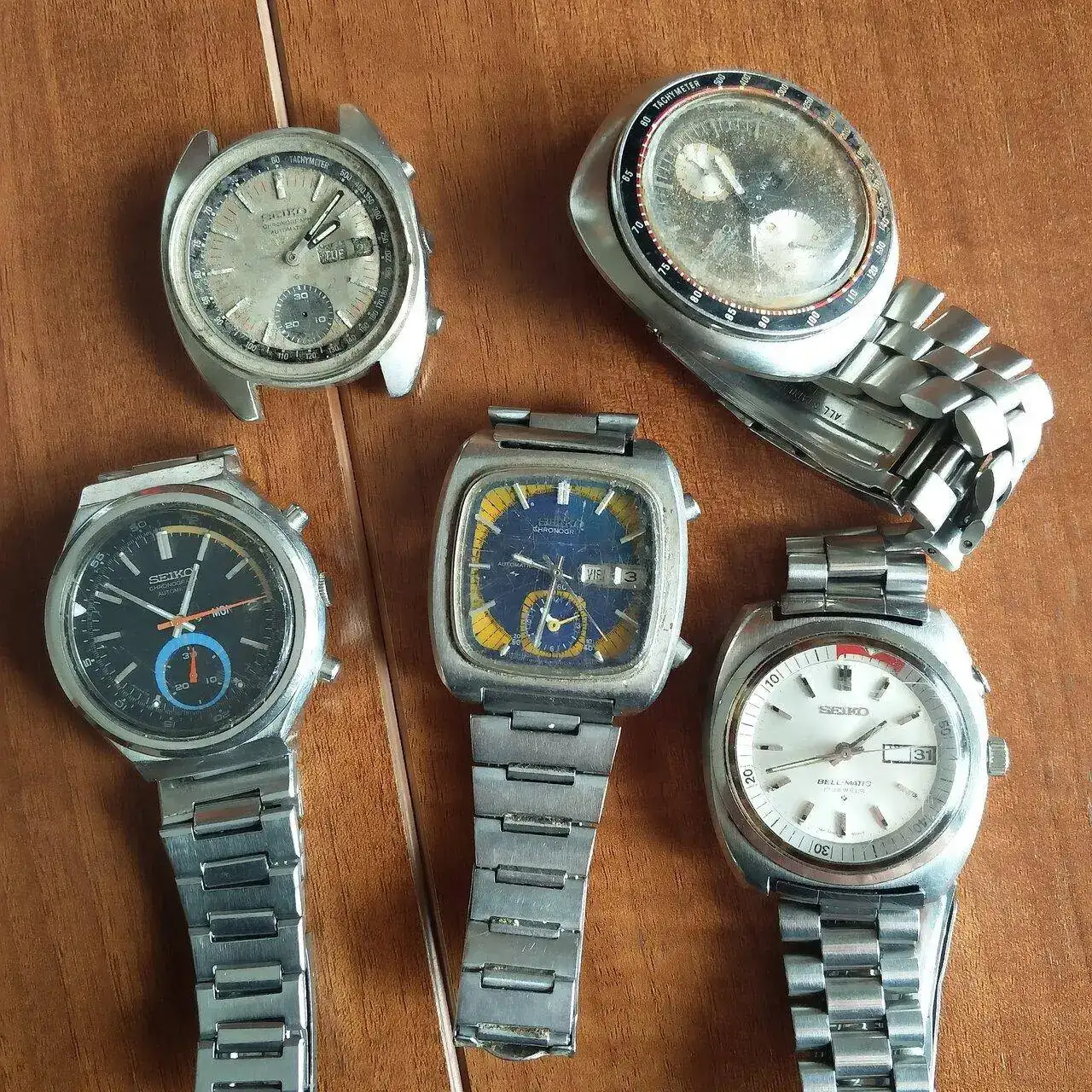 Ahí está guardado el tesoro de Sierra Madre. Qué conste que yo tuve mi primer acceso por casualidad, necesitaba una esfera de Seiko Bell-Matic y el señor X estaba liado por lo que me sacó un cajón y me dijo que buscara entre la "chatarra" a ver si había alguna. Ese día casí me da un mal al encontrarme con esto y algunas cosas más en la caja, pero ese día no hubo forma de llevarse nada...