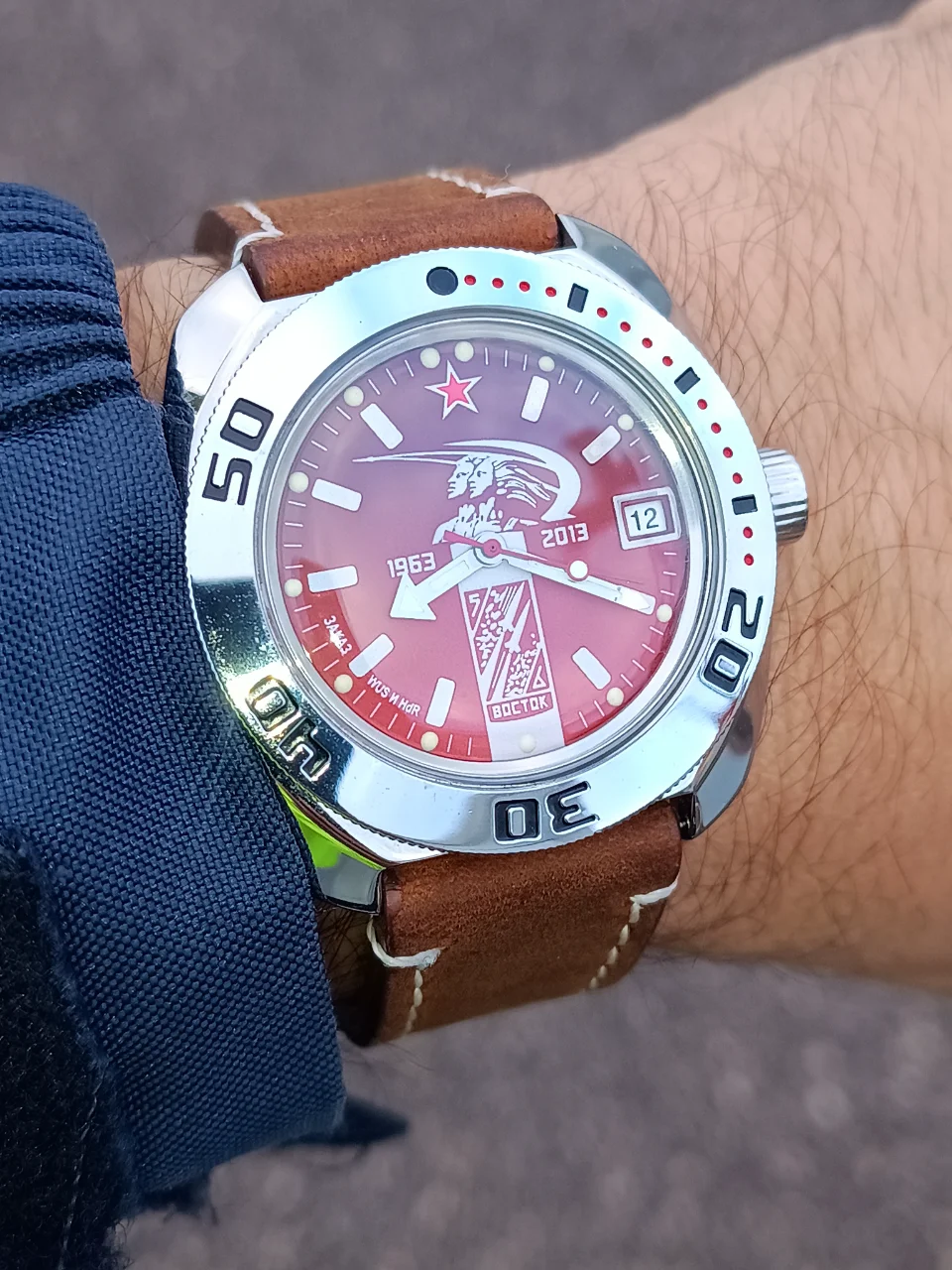 Gracias!. En efecto, este reloj es un proyecto de otros dos foros de relojes HdR y Wus. Está esfera homenajea el 50 aniversario de las misión 5/6 con Valentina Tereshkova como tripulante de la Vostok 5.