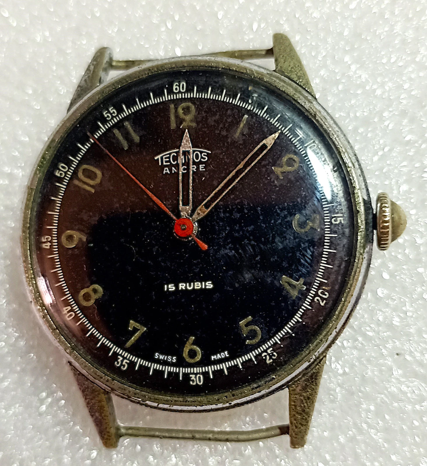 Hoy os muestro este Technos que debe ser de los años 50. Tipo militar y asas fijas con una AS1188 en su interior que tenía el eje de volante roto.