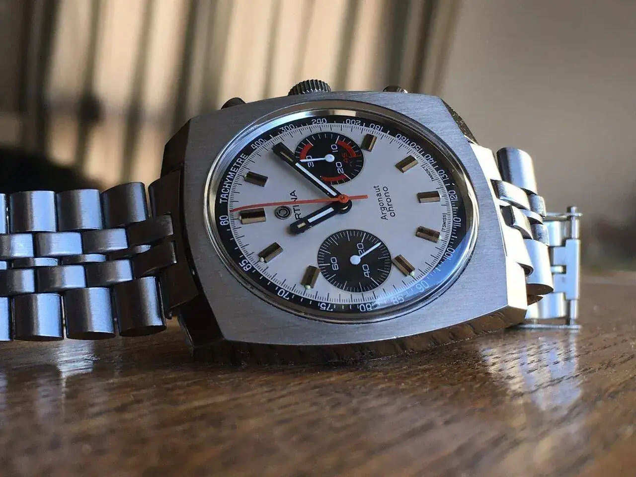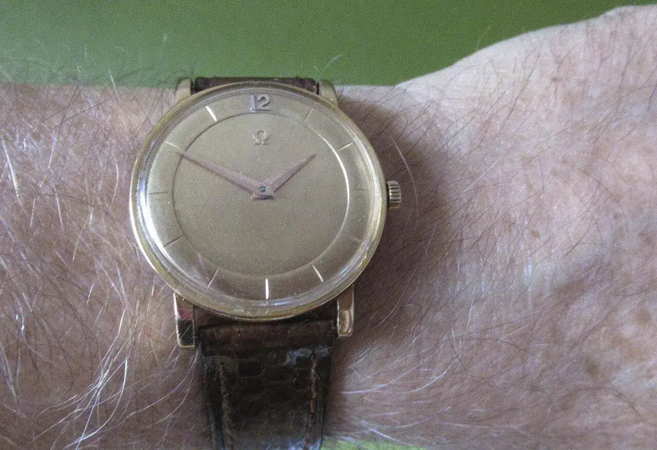 Hoy, día especial, llevo uno especial, un 511 del que se hicieron muy pocas unidades. Lo hizo Omega en la recién adquirida fábrica de Favre y casi todos en el noble metal. Le falta la viveza de un segundero.
