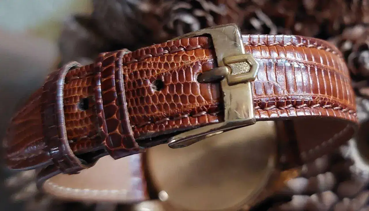 Con su escasa hebilla.