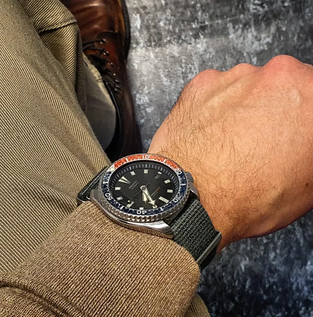 Me encanta ese seiko pepsi , incluida la nato gris verdosa que parece que es cómoda. Qué buen gusto !!