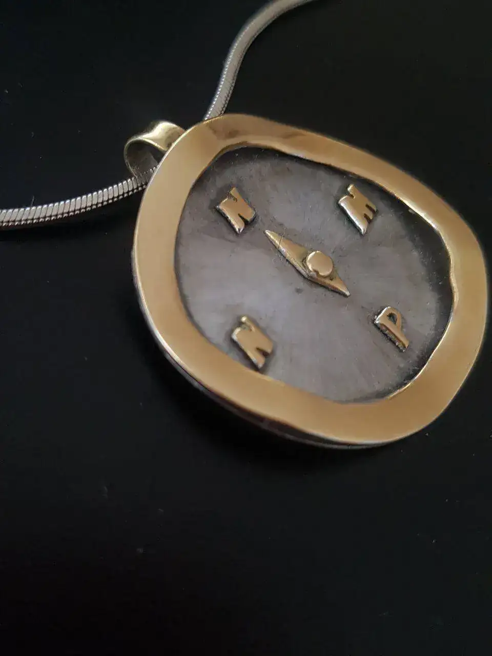 Me gusta mucho tu amuleto! Si además te lo diseñó tu marido ya ni te cuento el valor emocional que lleva. y si, es de formas irregulares, con lo que a mí me gusta todo lo irregular jajajajaja , porqué tiene todo que ser perfecto??!!Bueno, pues nada, como es viernes y la confianza da asco, y mi reloj de hoy es para que me empaléis directamente (ya lo habéis visto en otra ocasión, pero hoy me lo he puesto porque es enorme y verde, y son los tonos que llevo hoy), pues os pongo mi colgante-amuleto, que muchos confunden con un reloj aunque no sé por qué...