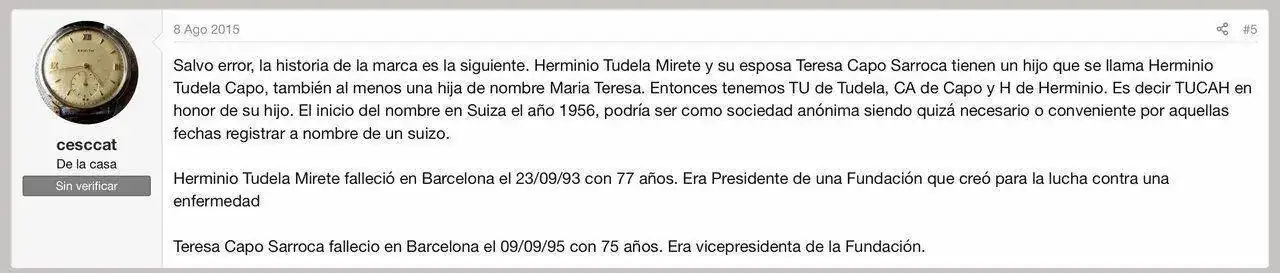 Te dejo algo más de información sobre TUCAH, aportada en el foro hace algunos años por nuestro amigo Cesc.