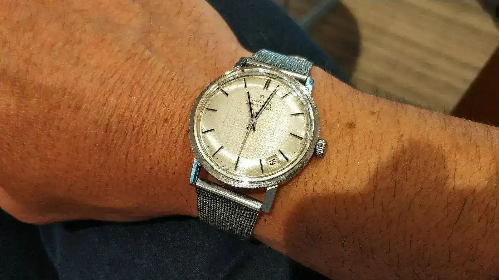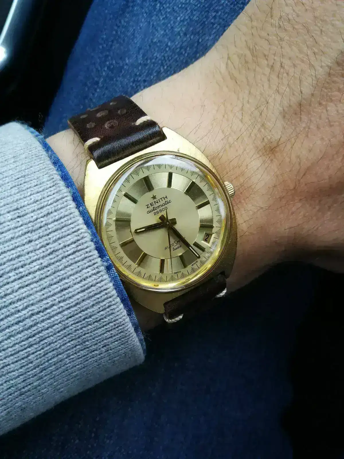 Ese Zenith "textil" y con el calendario a las 4 y 1/2, que no recuerdo haberlo visto antes, sencillamente brutal.Saludos. Hoy de Sherpa en centro comercial con mis dos chicas. ¡Aayyy señor, llévame pronto!