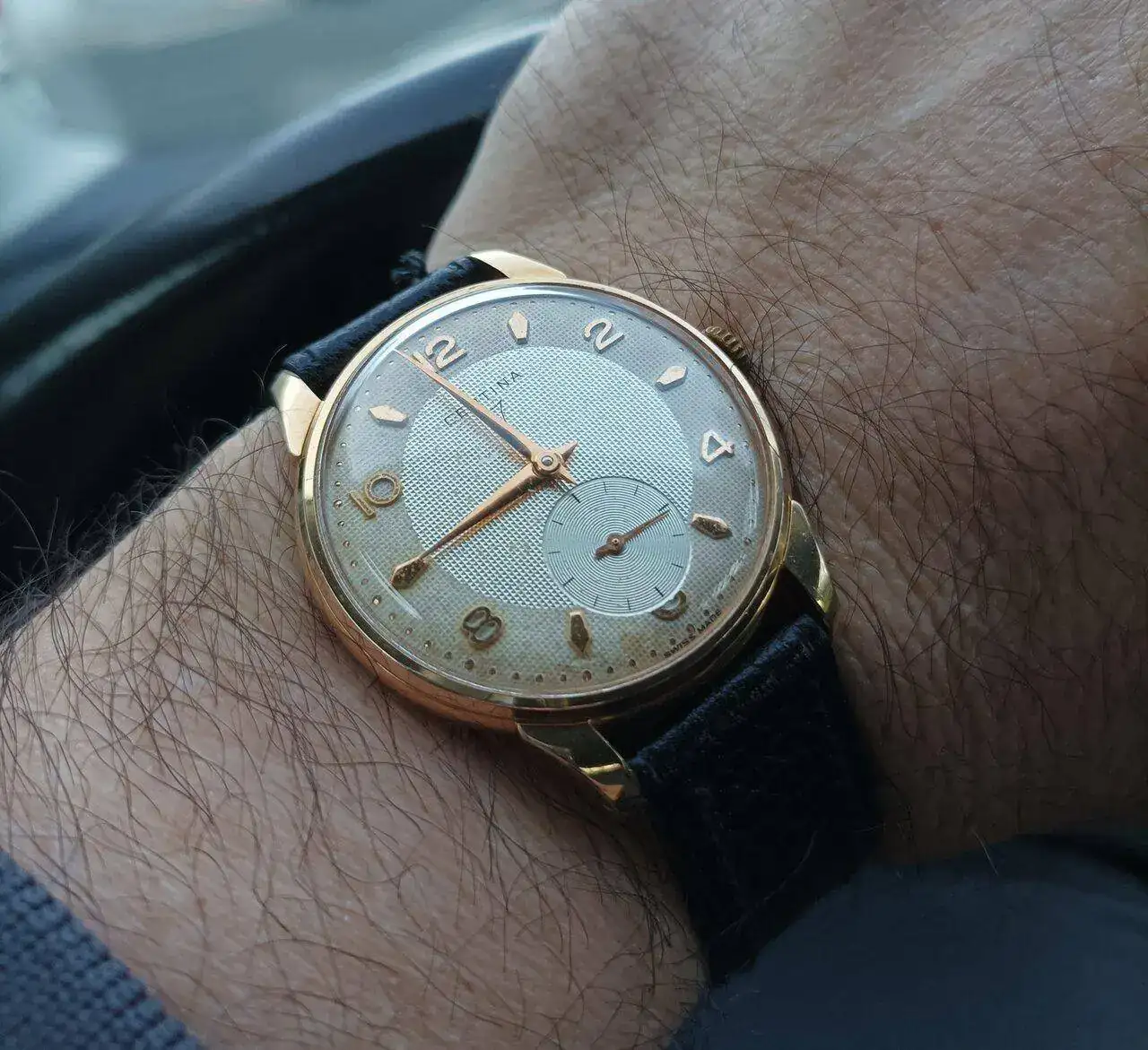 ¡Un reloj muy bonito, y el calibre tiene un aspecto impecable! Si no es indiscreción, ¿te puedo preguntar donde te lo han restaurado? Siempre esta bien saber quién puede hacer este tipo de trabajo en Bilbao.Pues ya en la muñeca, Le Coultre cal 818-2 mecánico manual y aunque son 31 m.m. mi muñeca de famosa lo va a lucir tal cual, ahí van unas fotos.