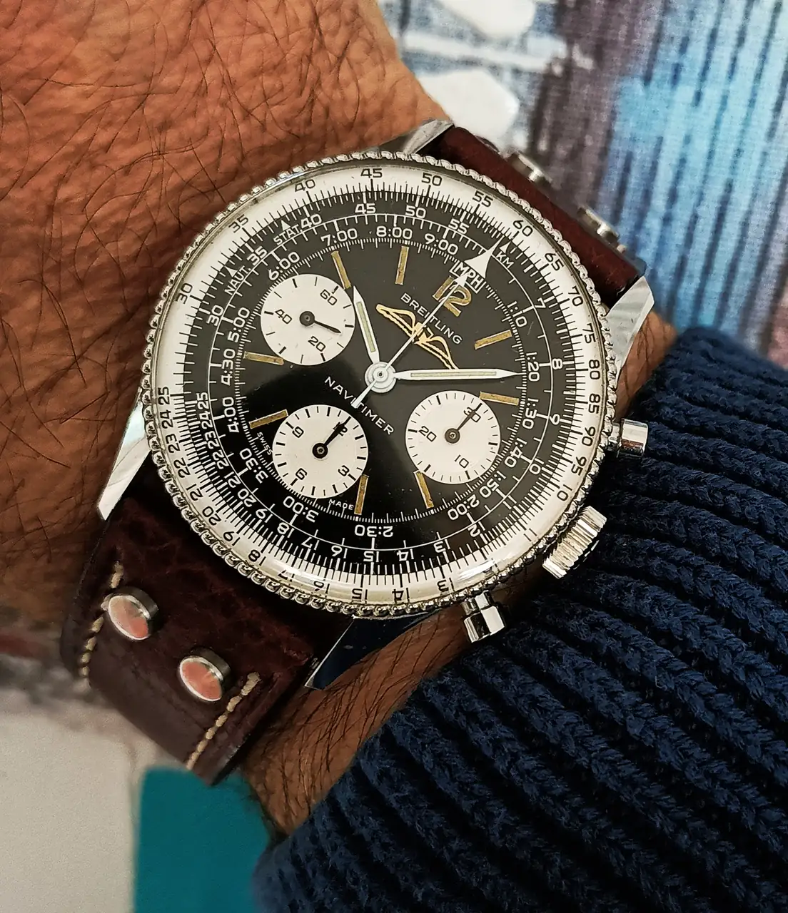 Qué barbaridad de reloj, compañero…Buenos días, acompaño hoy día de Sant Esteve , San Esteban con un navitimer de 1960 , monta un venus 178 .