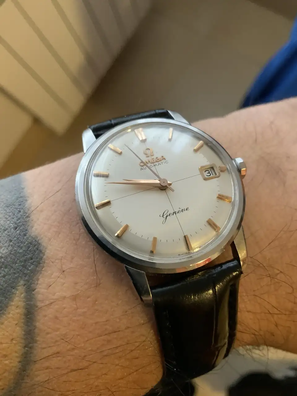 Muy guapo el reloj especial y espacial de rodilla. Acompaño a Antonio con uno de la familia, precioso ese Geneve en cursiva.