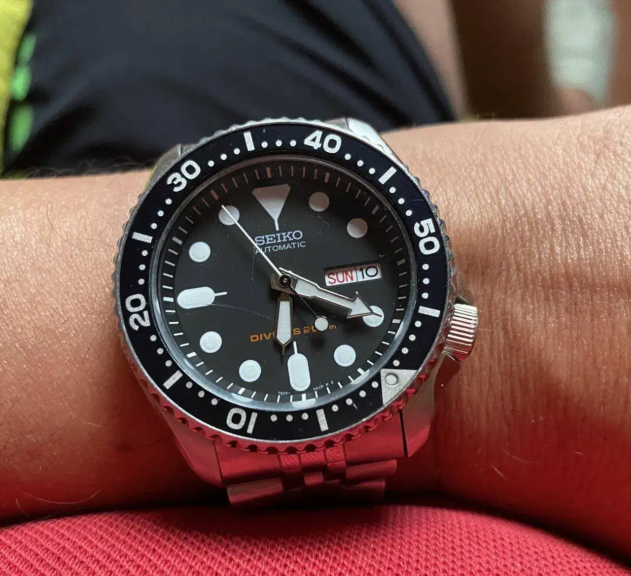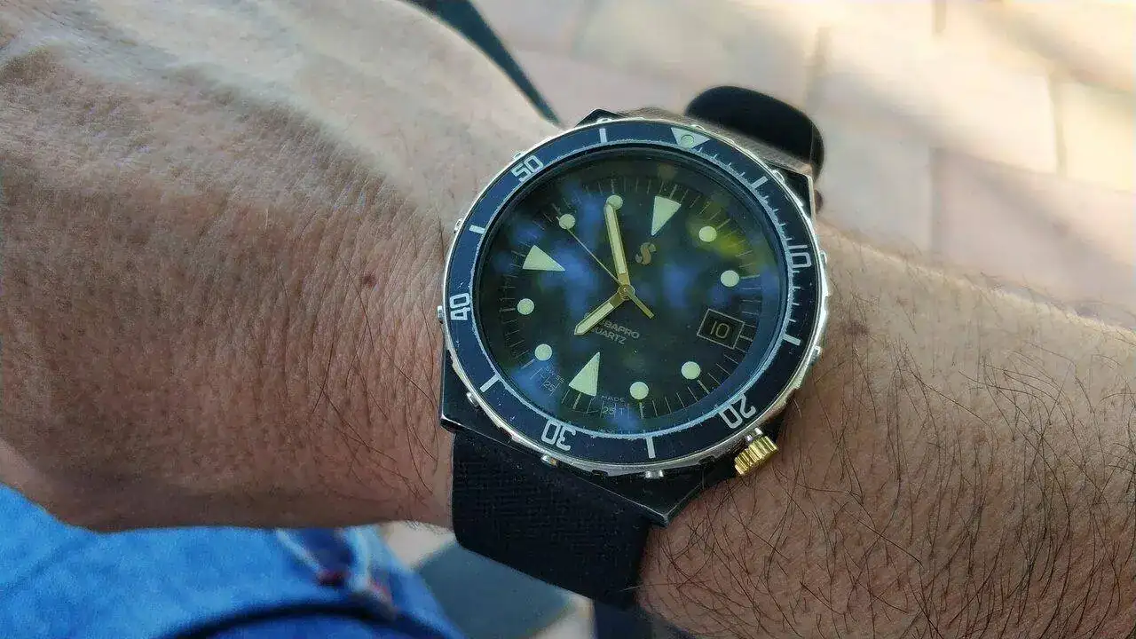 En parte es el gran culpable de iniciarme en la afición relojera, igualmente es casi el único reloj que llevo en verano (mar, excursiones, bicicleta etc....) hasta labores de bricolaje, jardinería y lo que haga falta. No es un GShock pero parece indestructible y es muy cómodo en la muñeca.