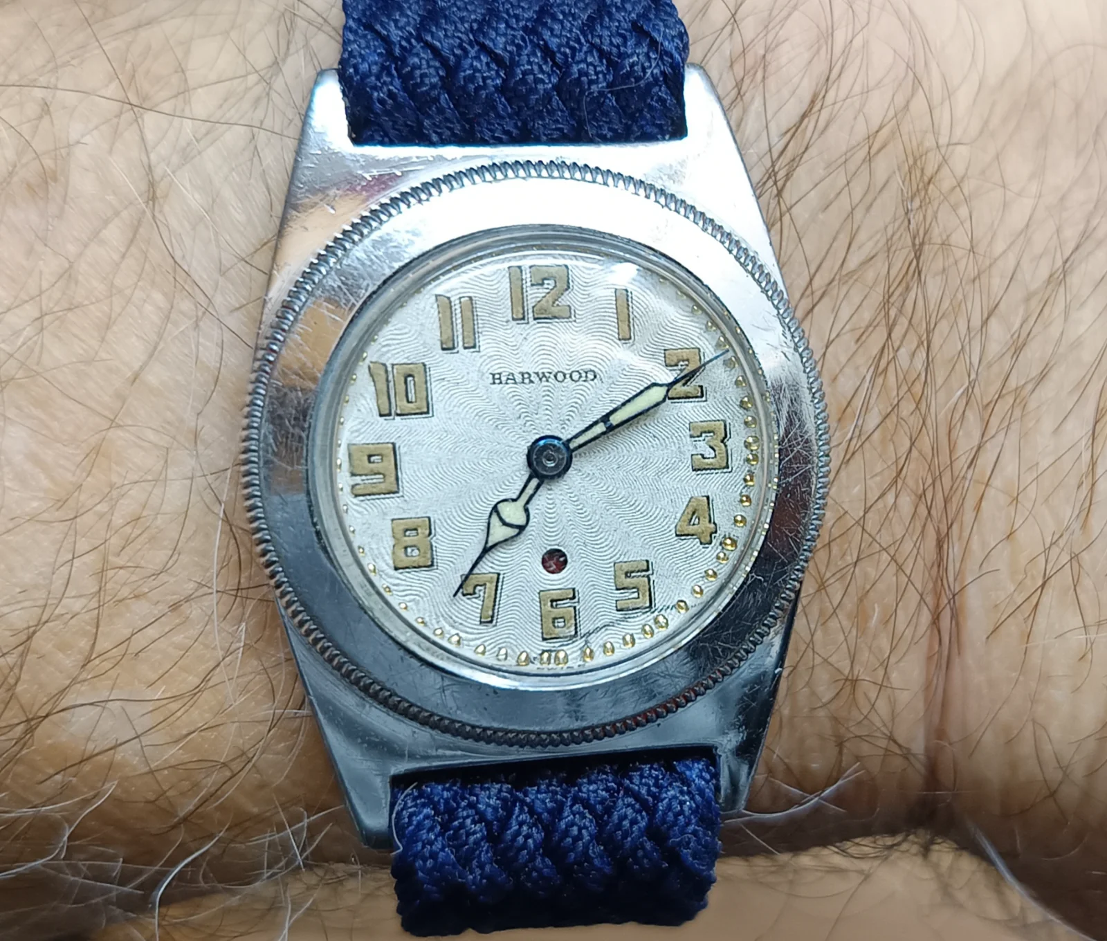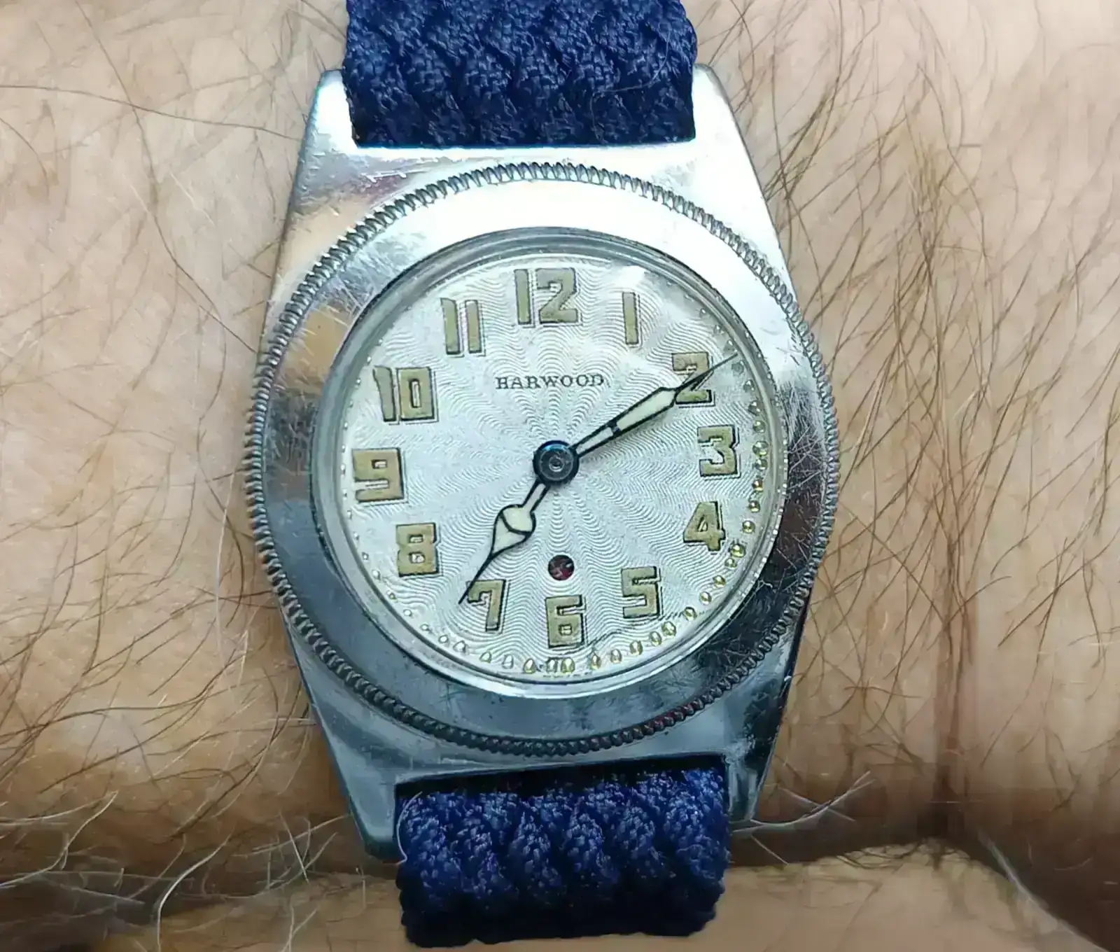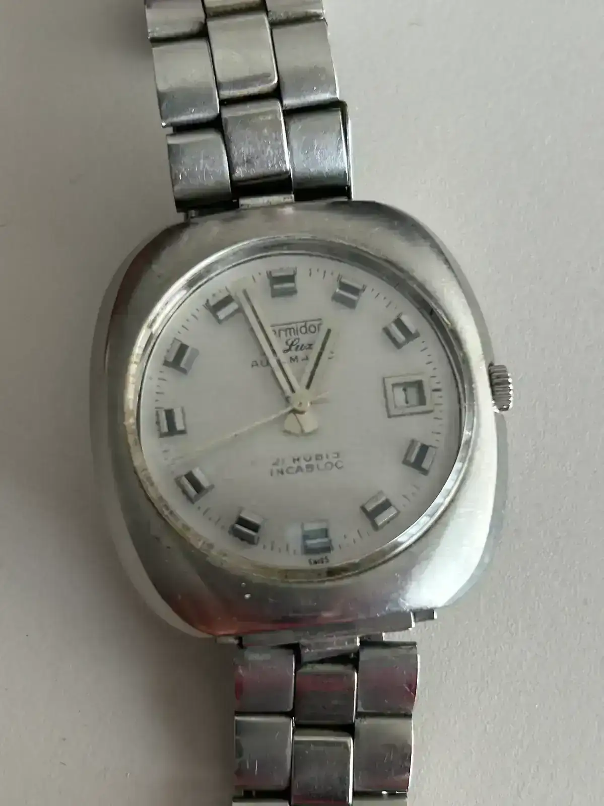 Recién comprado en un mercadillo al lado de la catedral de Zaragoza. Lo mandaré a pulir un poco y poner una correa pues el brazalete no es el suyo . Me gusta su esfera y la caja . El reloj funciona muy bien y por 80 euros .
