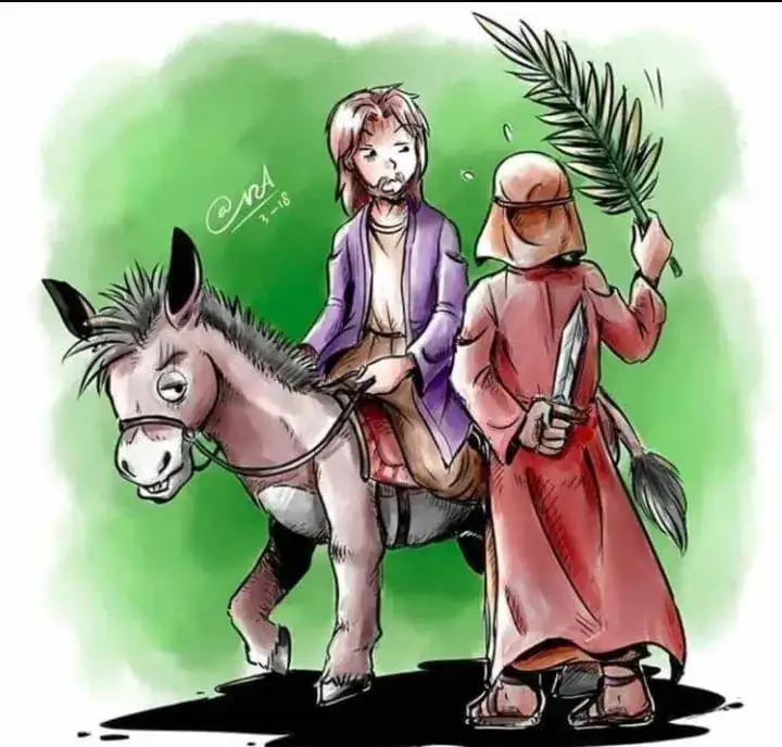 La única que se puede hacer...menos mal que Él nos enseñó que hay que poner la otra mejilla.Al hilo del comentario de Javier "con palmas a recibir al señor y su borrico ...", y, si nos atenemos a que sea real la historia que nos han contado, me ha llegado hoy por "guasap" un dibujo muy ilustrativo