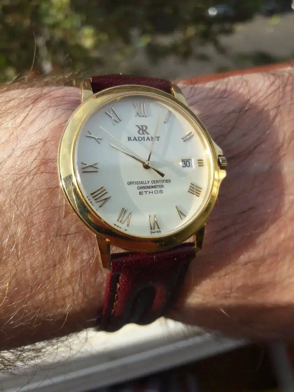 Hoy me permito la osadía de mostrar un clásico Radiant ETHOS. Modelo de cuarzo pero con un sobresaliente mecanismo Eta grado chronometer . Conjunto todo el en oro 18k , fue el de graduación de mi hermano en la uni.