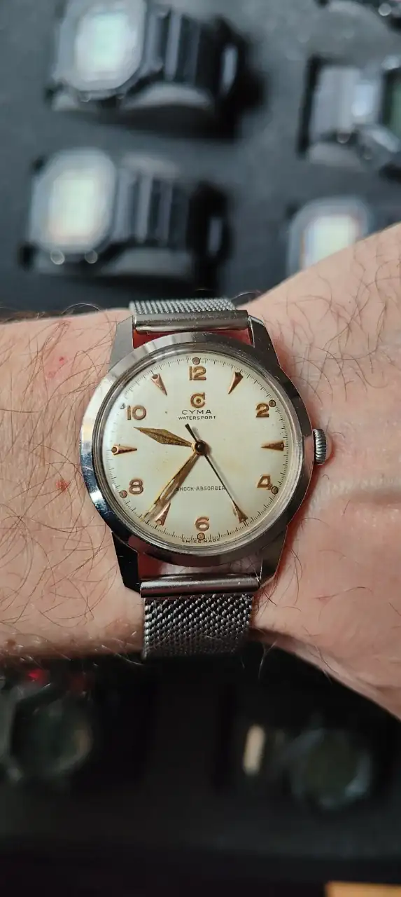 Al final conseguiste que entraran los pasadores. Todo un clásico del Vintage.Aquí va mi Cyma de hoy, esos 32mm aparentan 35! Buen domingo compis.