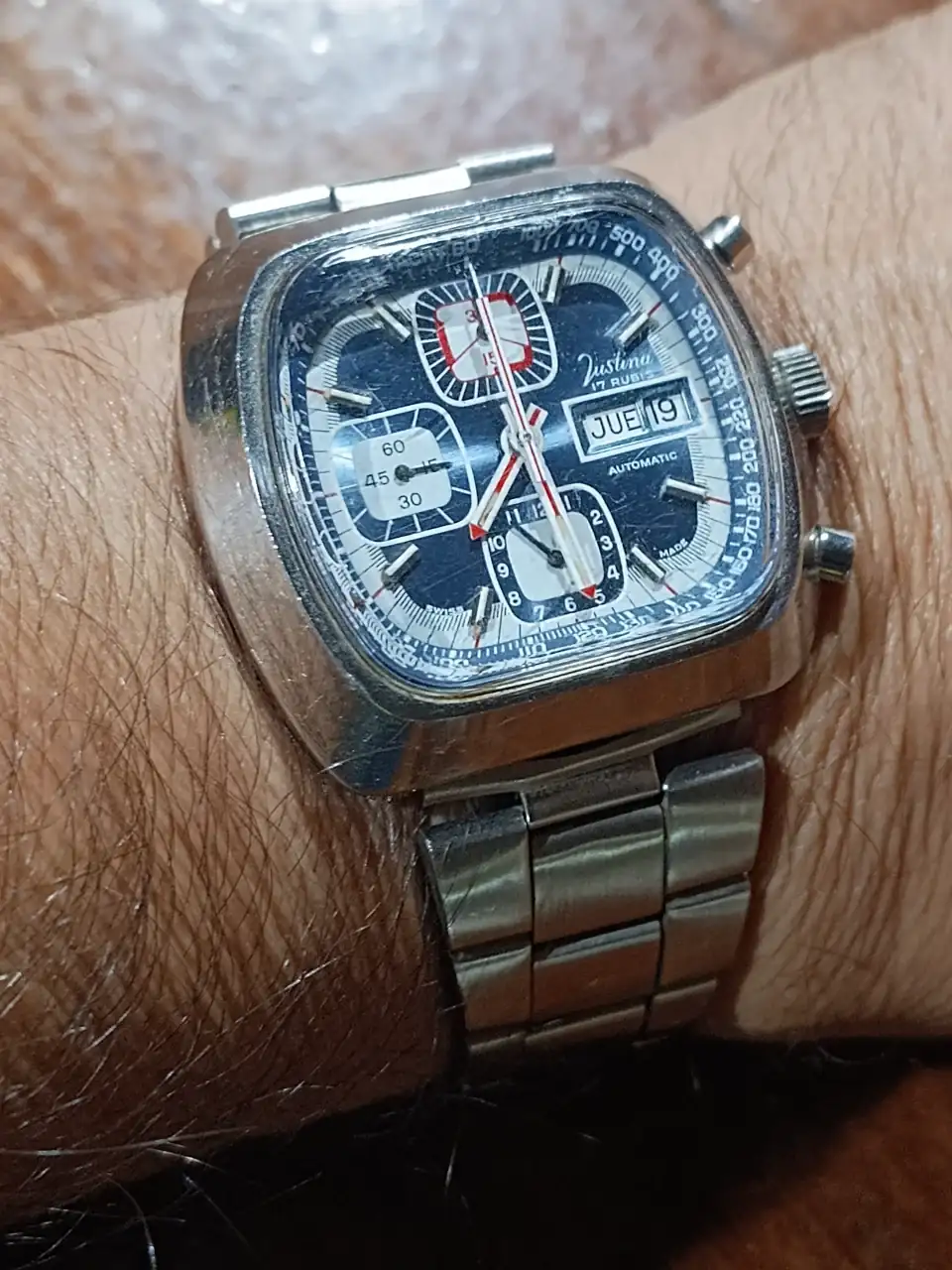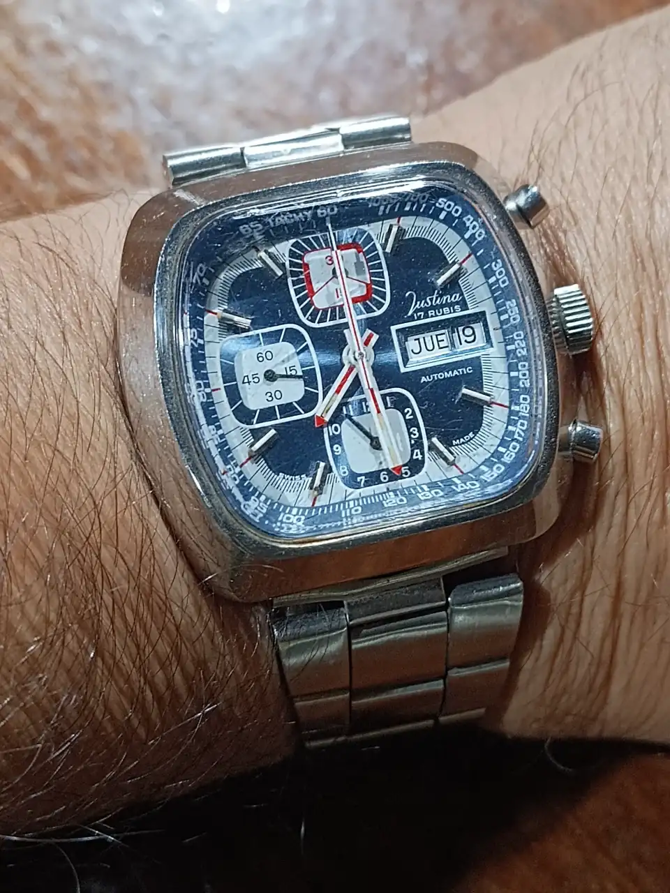 Bonito ese Justina.Buenos días y buenos relojes ya!!!. Yo voy con este aparatoso aparato de la marca Justina....
