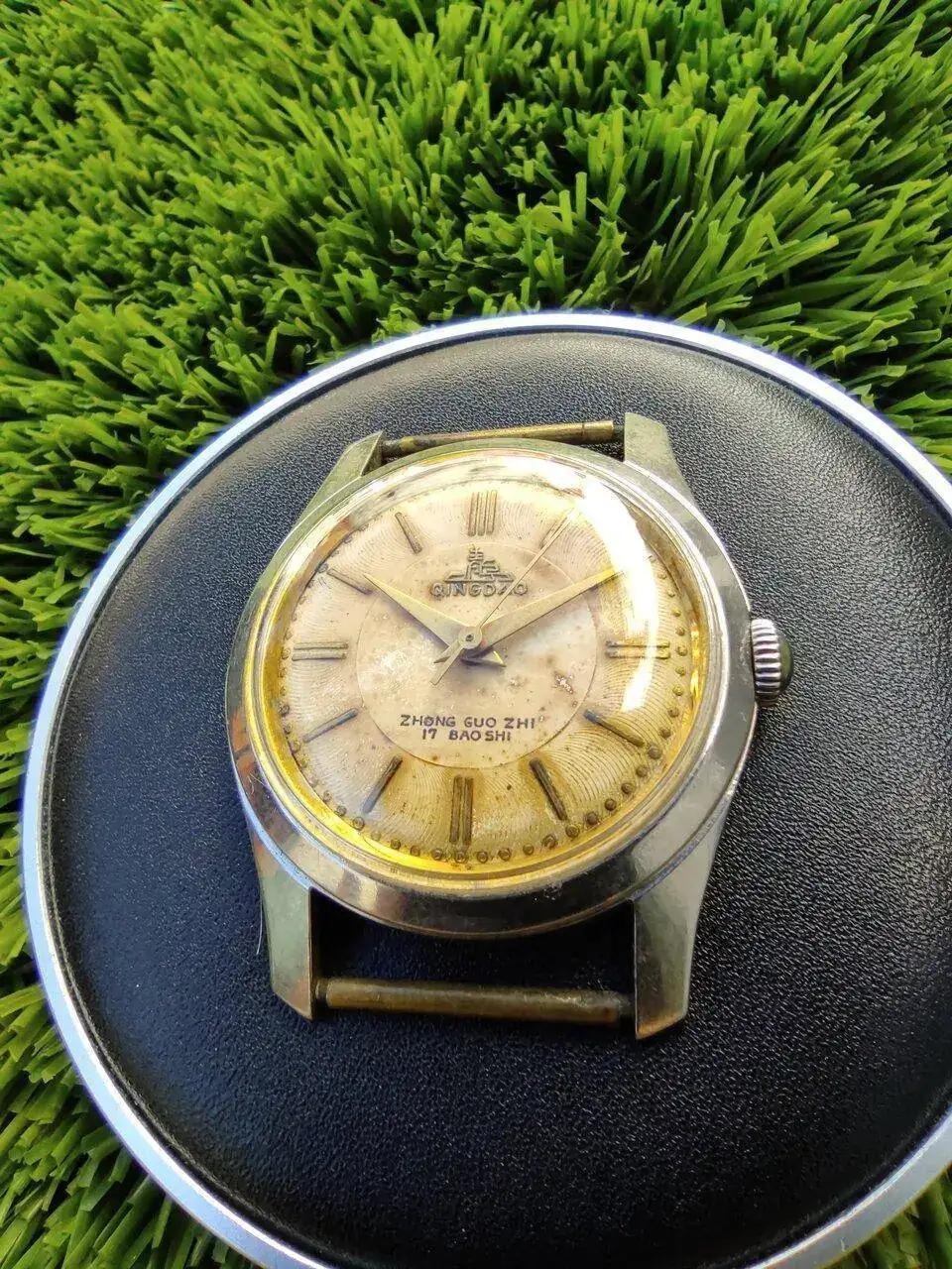 Qingdao A-601 de fabricación propia. Movimiento derivado del A-581 de Shanghái realizada con maquinaria obtenida de Alemania Oriental.