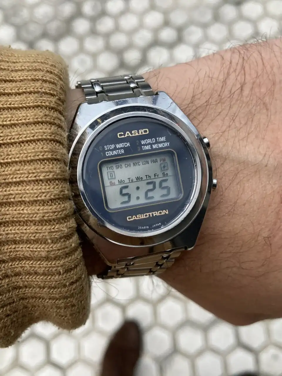 Lo has dejado niquelao.....Esas cosas no se pueden dejar pasar. Enhorabuena, un abrazoPues ayer rescaté este Casiotron de una tienda de segunda mano. No podía dejar pasar un casio de los primeros. Quitada la mugre y con una pulida no muy intensiva (tiene marcas realmente profundas...) ya luce mucho mejor. Ahora tengo que estudiar la puesta a punto de funciones. De momento lo he puesto en hora. Tiene un setting realmente curioso. ¡Saludos a todos!