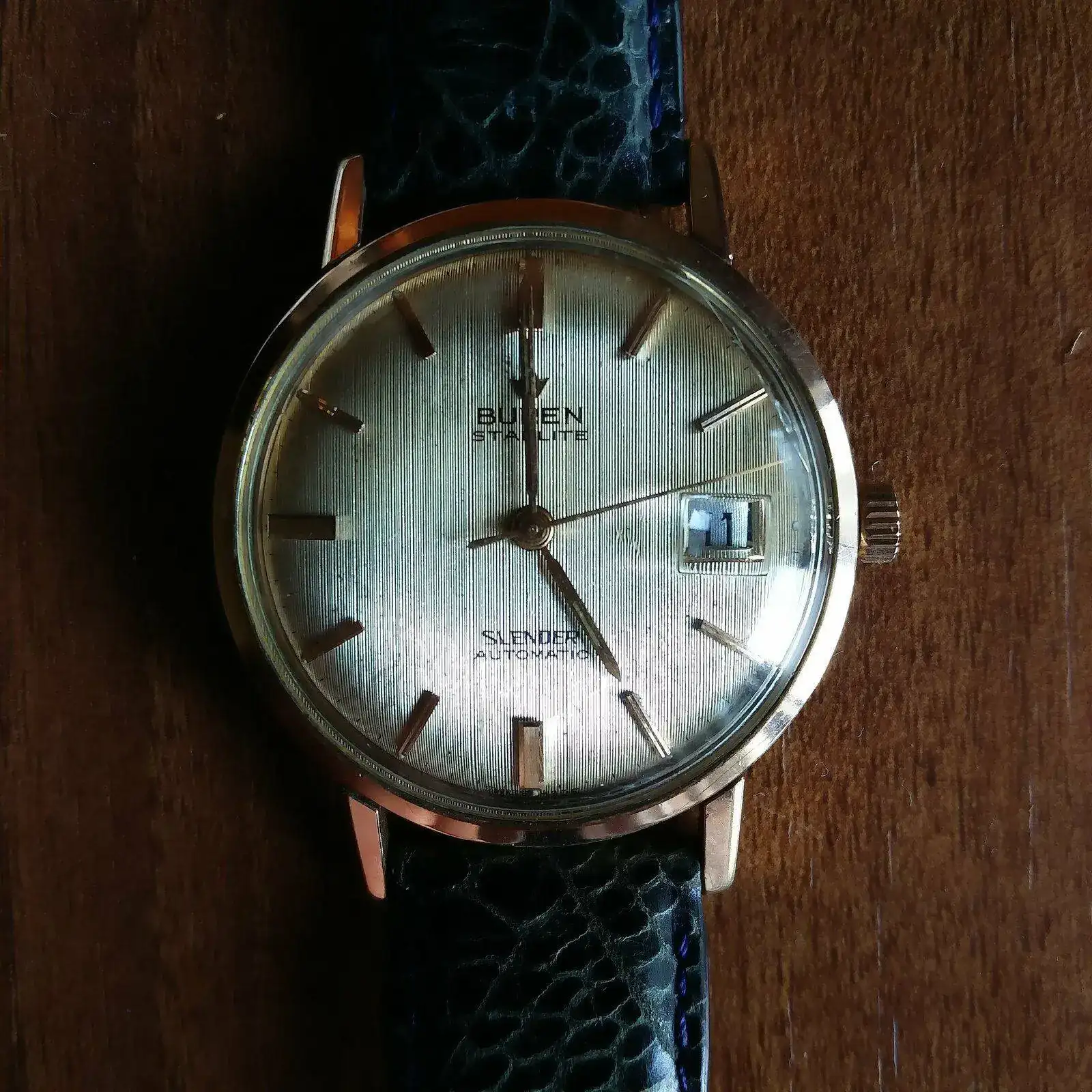 Compañero Kesar, aunque sólo hora, un Buren muy parecido al tuyo fué mi primer reloj vintage.Deseando que tengamos un buen lunes, tras deleitarme con vuestros aportes, os acompaño (fotos de ayer) con este Buren Starlite Slender que llegó el sábado y aunque no es del nivel de los Polerouter, creo que se le puede considerar el primer calibre con microrotor y motivo de disputa por su patente con U.G.