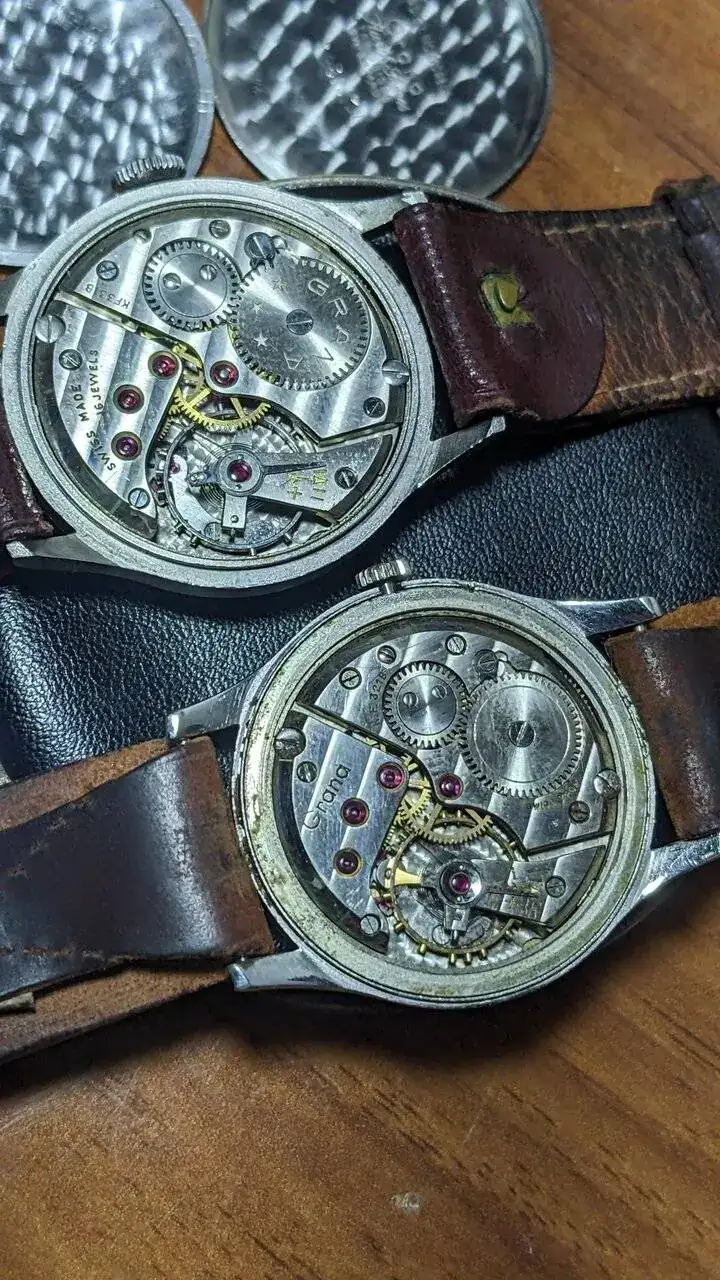 Amigo Denbora, vaya par de ejemplares más bonitos.¡Que chulada de Grana! Y menuda sorpresa de dial con números romanos. Me recuerda al de este Certina que tengo. Incluso la caja tiene un aire, aunque esta no es de acero.