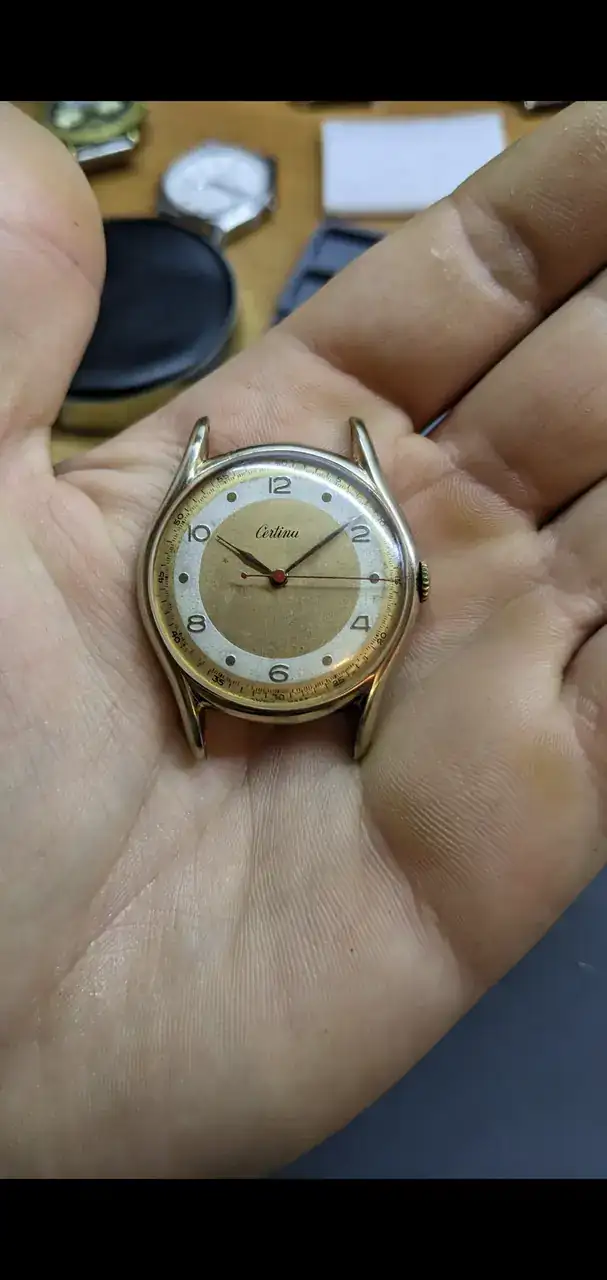 En cuanto al Certina, dejando al margen lo del logo, que tampoco me disgusta, podría decir que se trata de una mezcla de los 2 Granas que tengo. Por los números romanos y su disposición, por un lado; y por el otro, por el tono de los grises. La caja que lleva montada es una de mis favoritas de los Certina tempraneros.