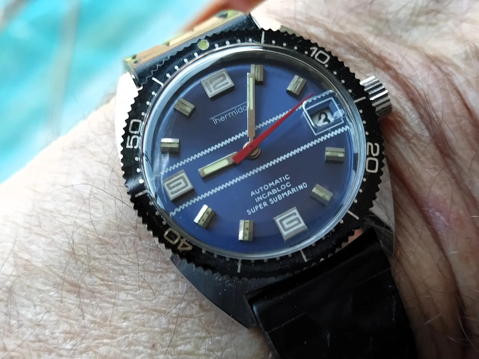 Precioso ejemplar de esa marca. Soy un gran fan de sus Divers, el tuyo esta perfecto. A disfrutarloEgun on, vamos con novedad, con su caucho thermidor.